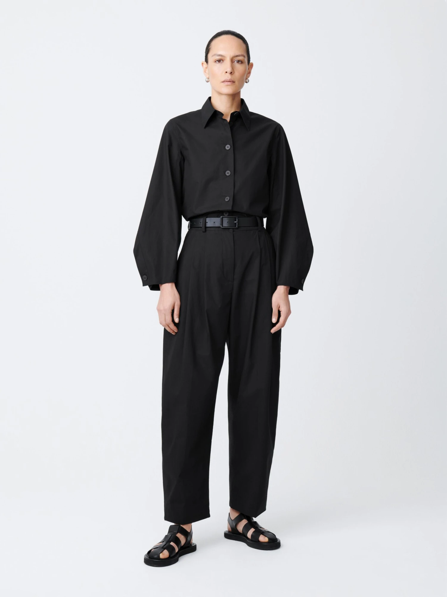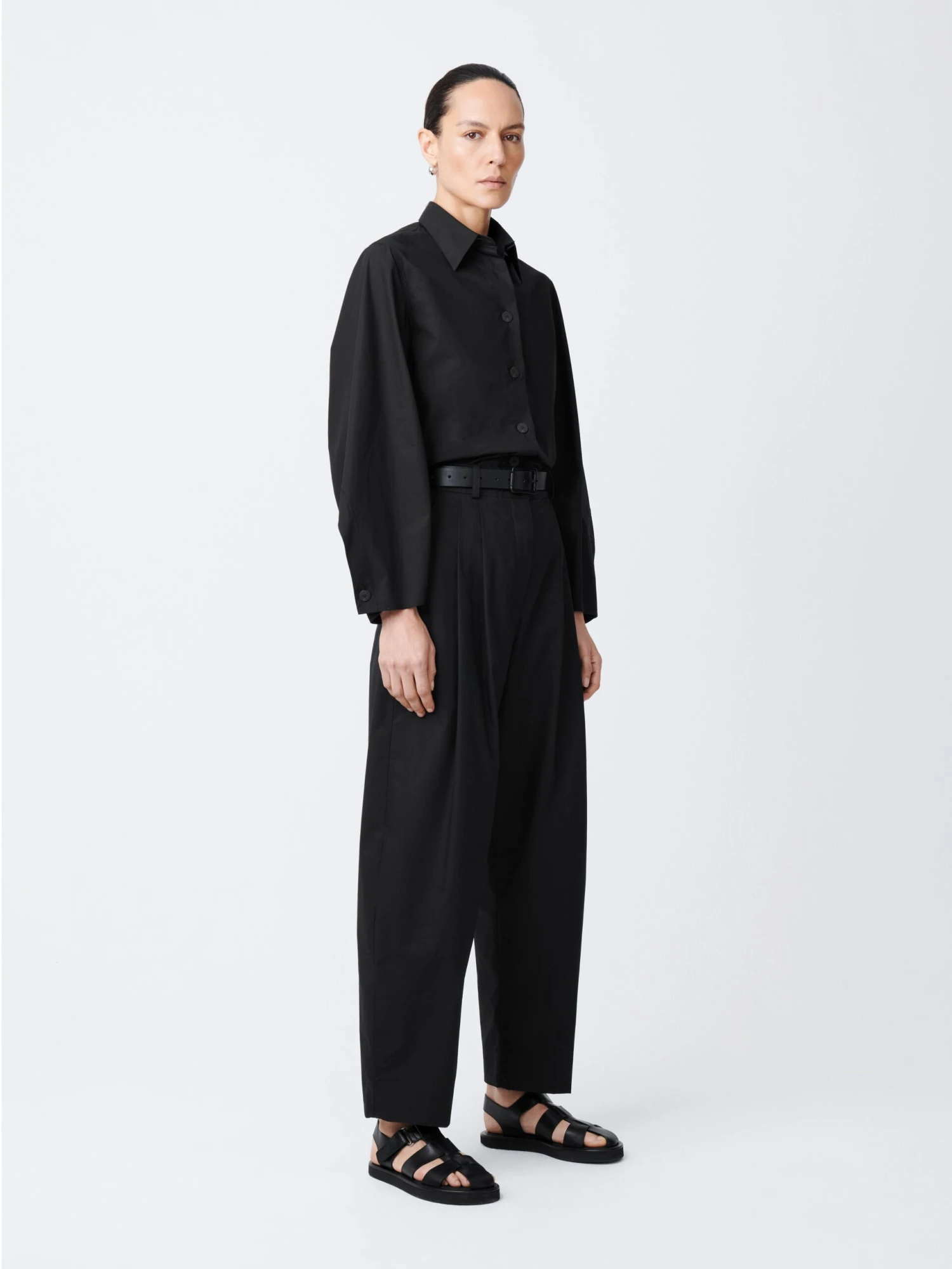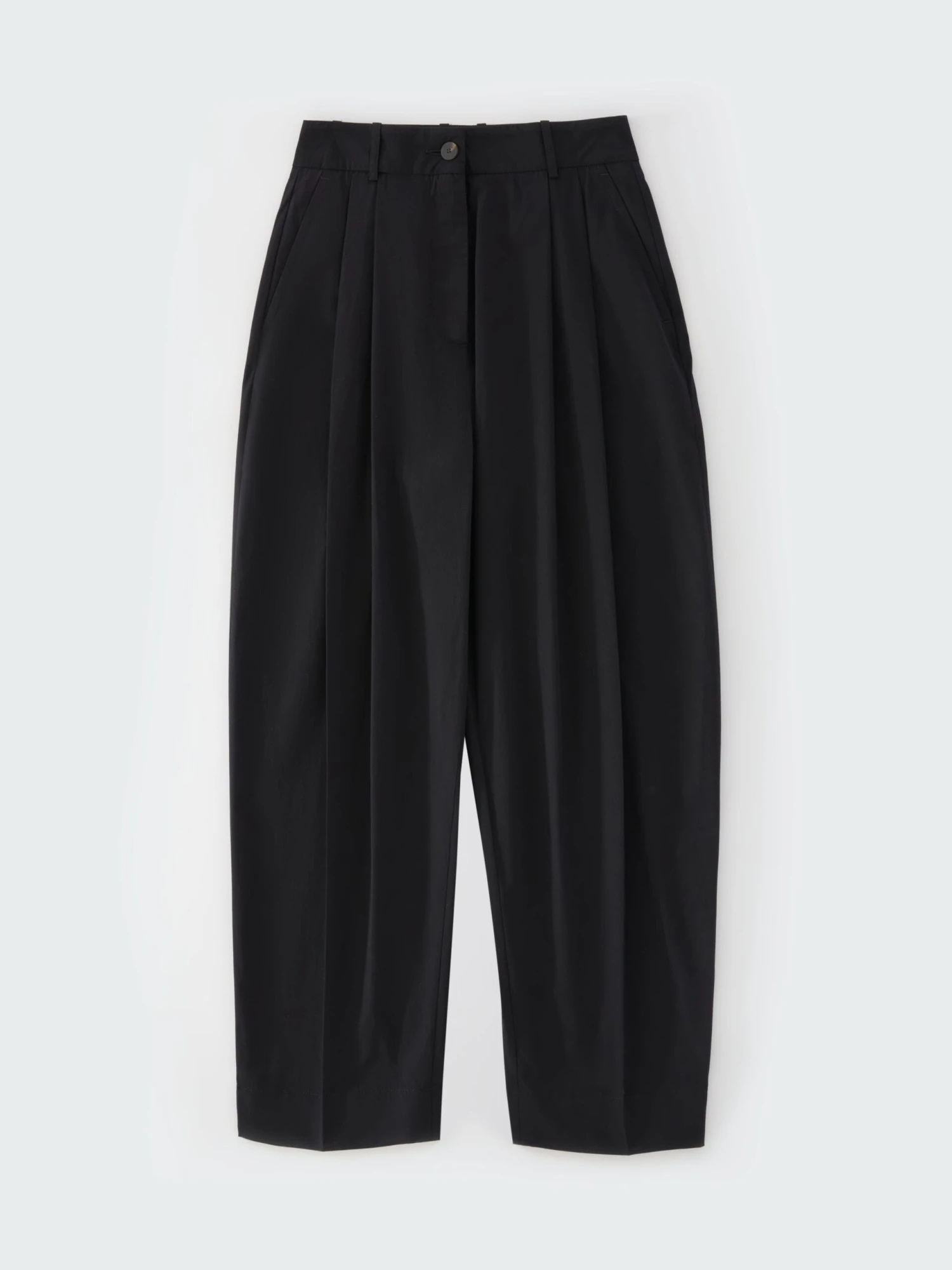 Cut this time from our signature powder cotton, the classic Acuna pants are a Studio Nicholson staple for good reason. They combine a high rise with a wide, flowing leg, which is slightly elongated to allow the fabric to fold and pool.