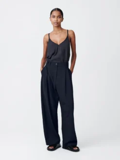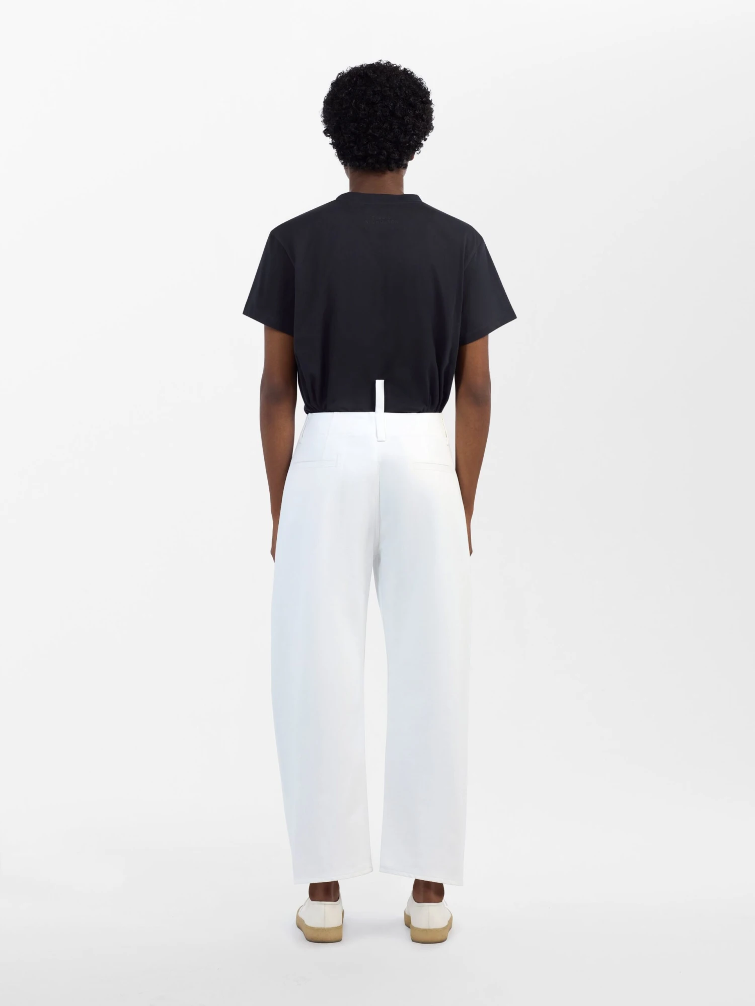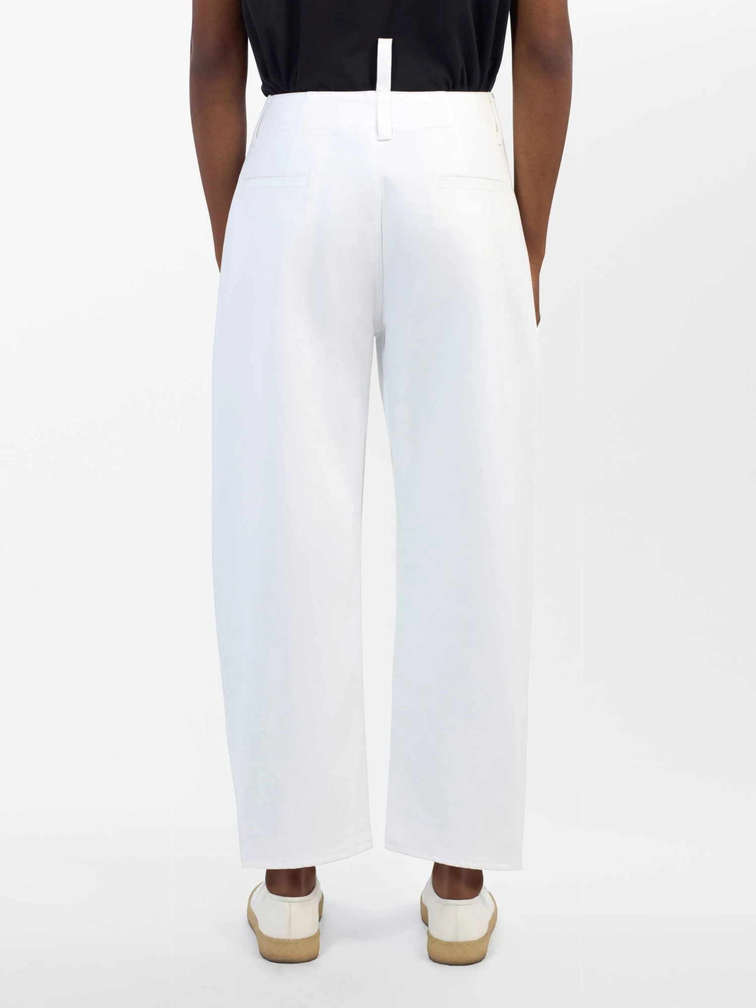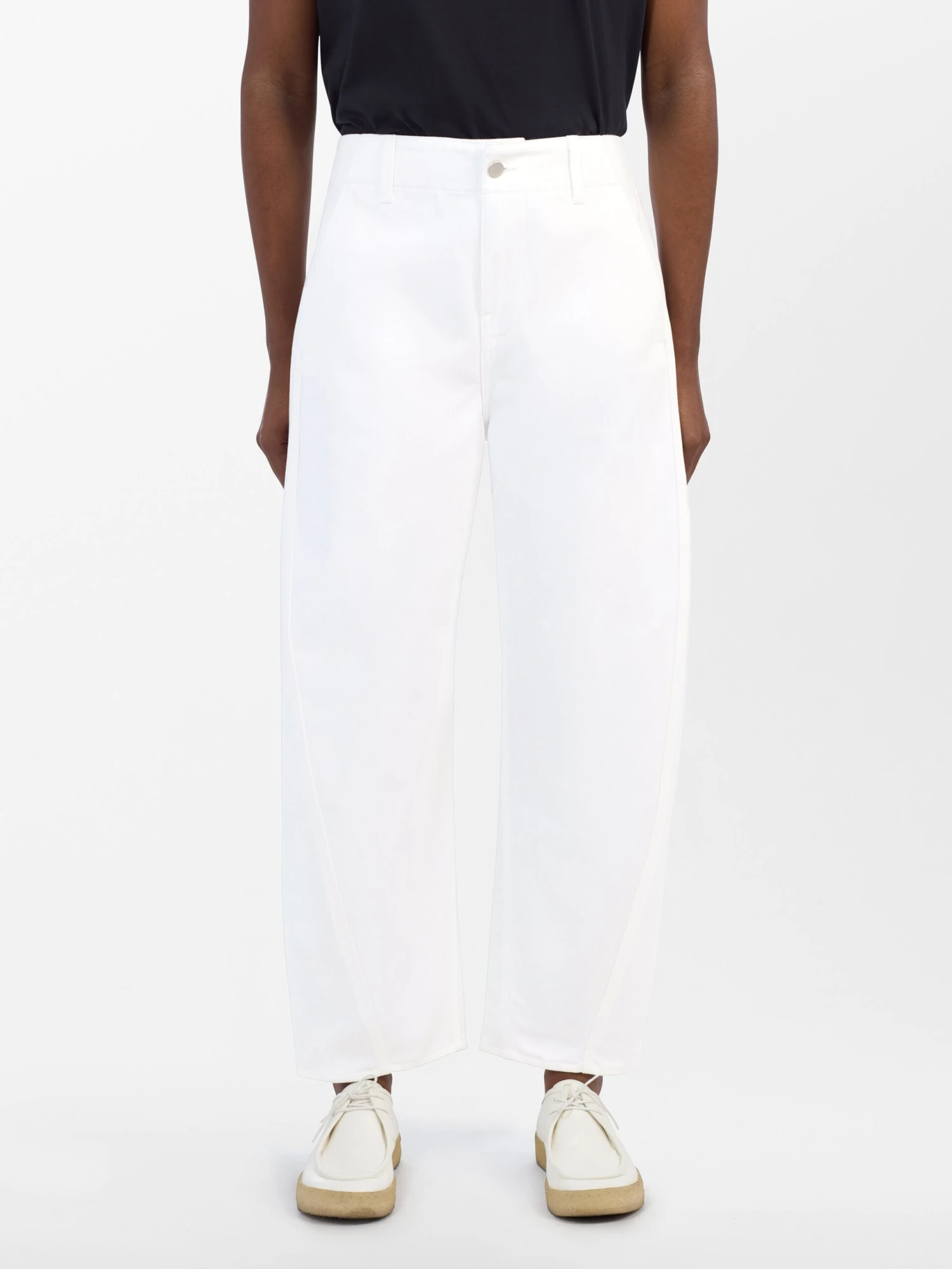 High waisted curved leg denim pant made from ISKO’s sustainable raw R-TWO™ denim.
