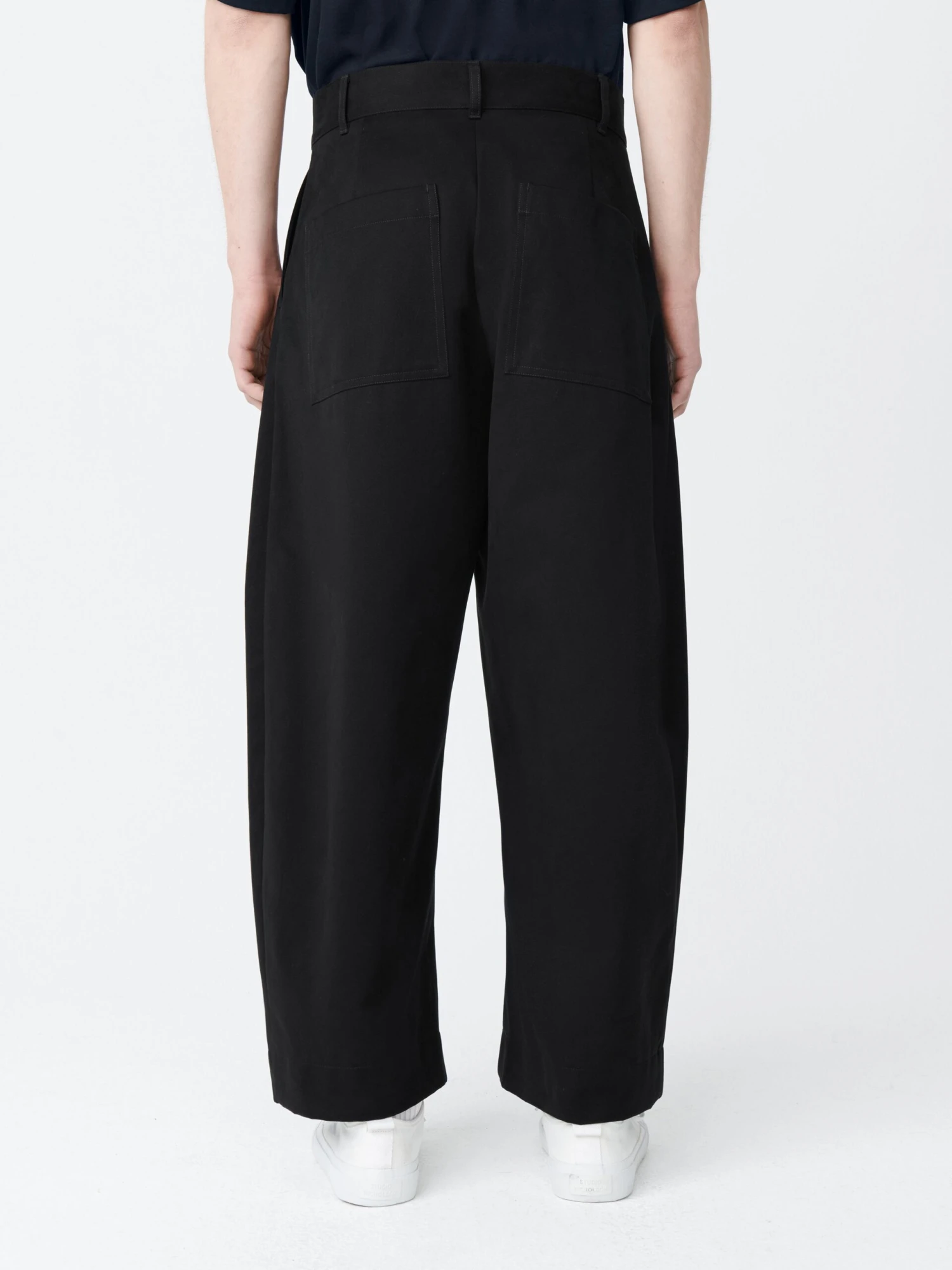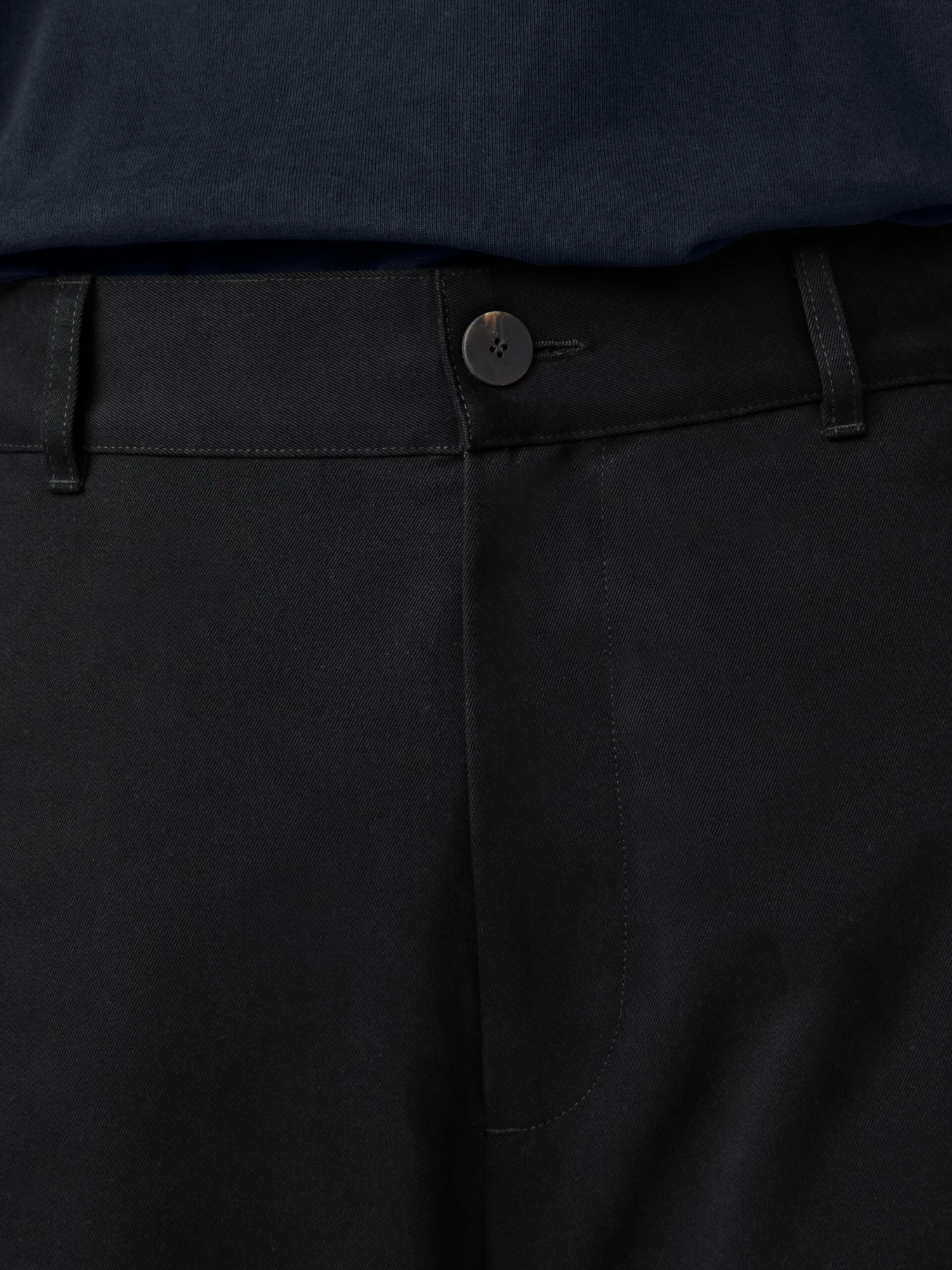 Our Bosun pants have a cropped, balloon-shaped leg with plenty of volume. Their silhouette is relaxed, but thanks to a meticulous cut they retain a sharp appearance. Constructed this season from a cotton twill with a tactile peached finish.