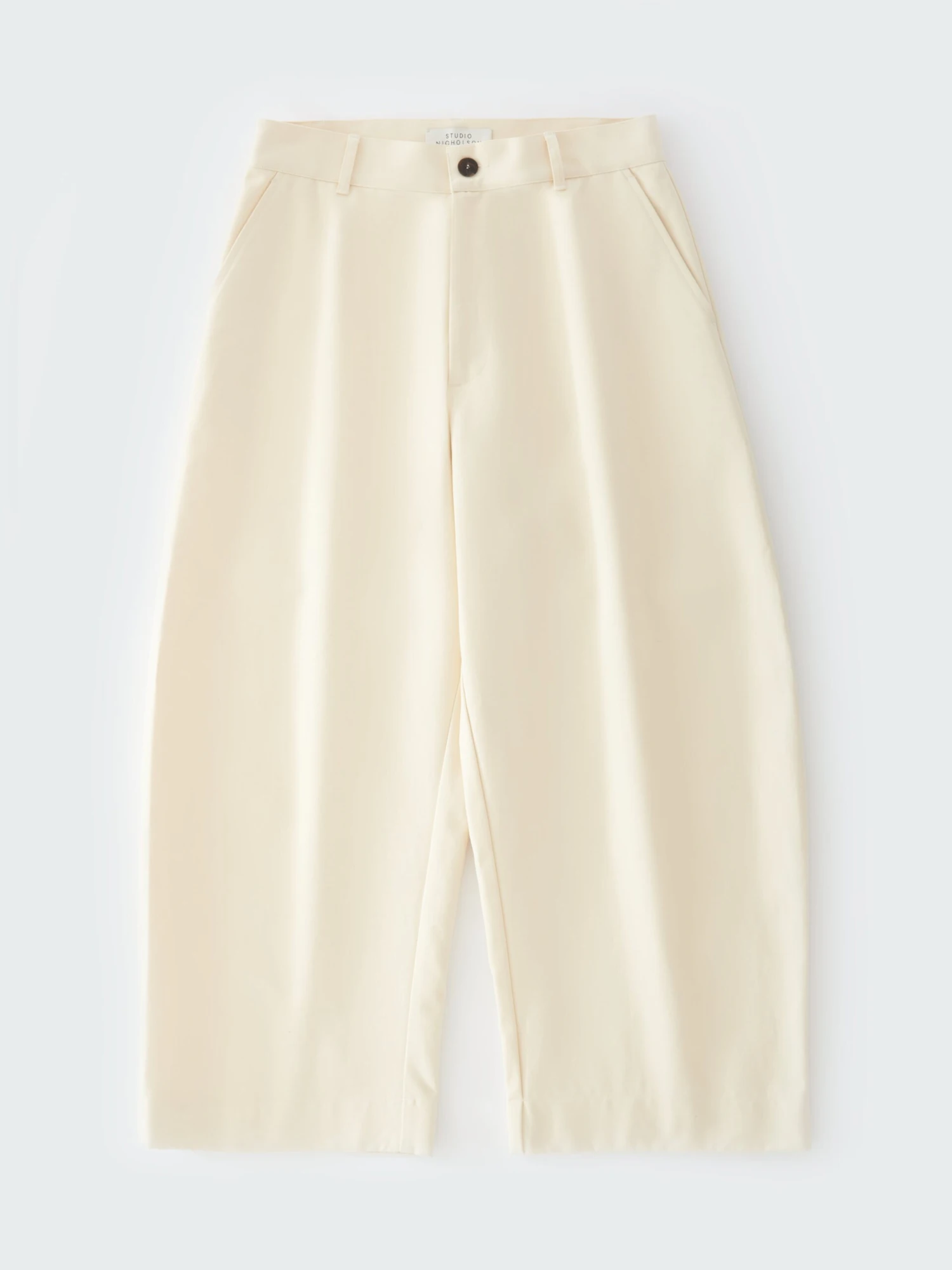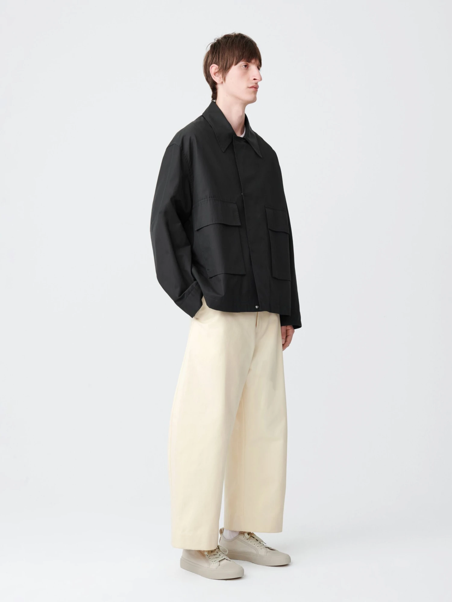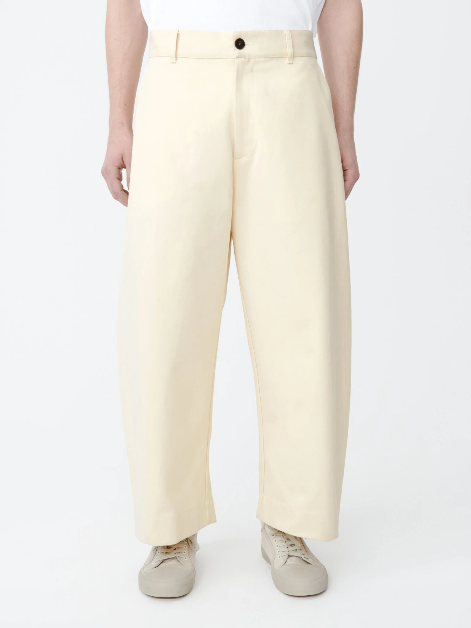 Our Bosun pants have a cropped, balloon-shaped leg with plenty of volume. Their silhouette is relaxed, but thanks to a meticulous cut they retain a sharp appearance. Constructed this season from a cotton twill with a tactile peached finish.