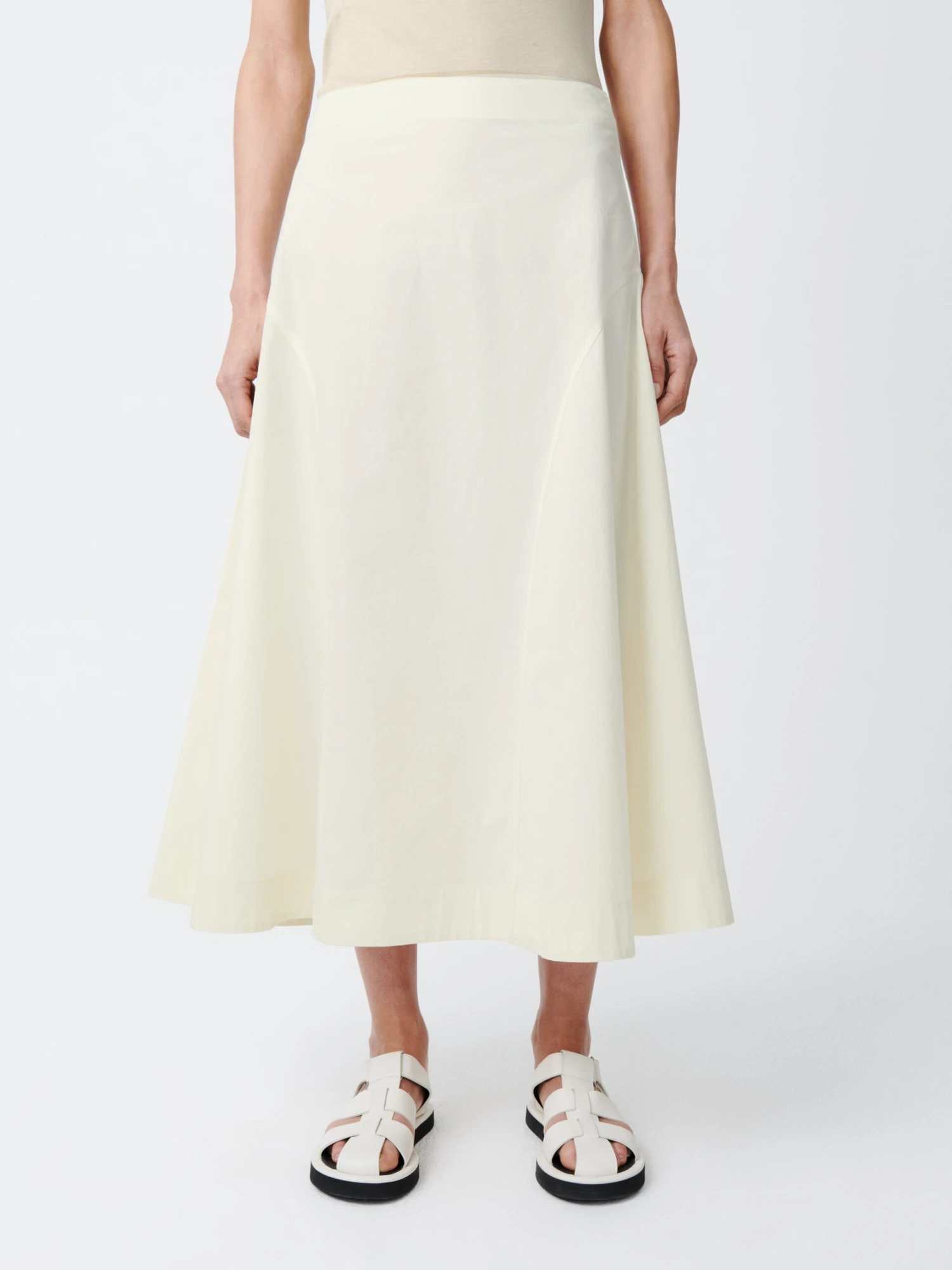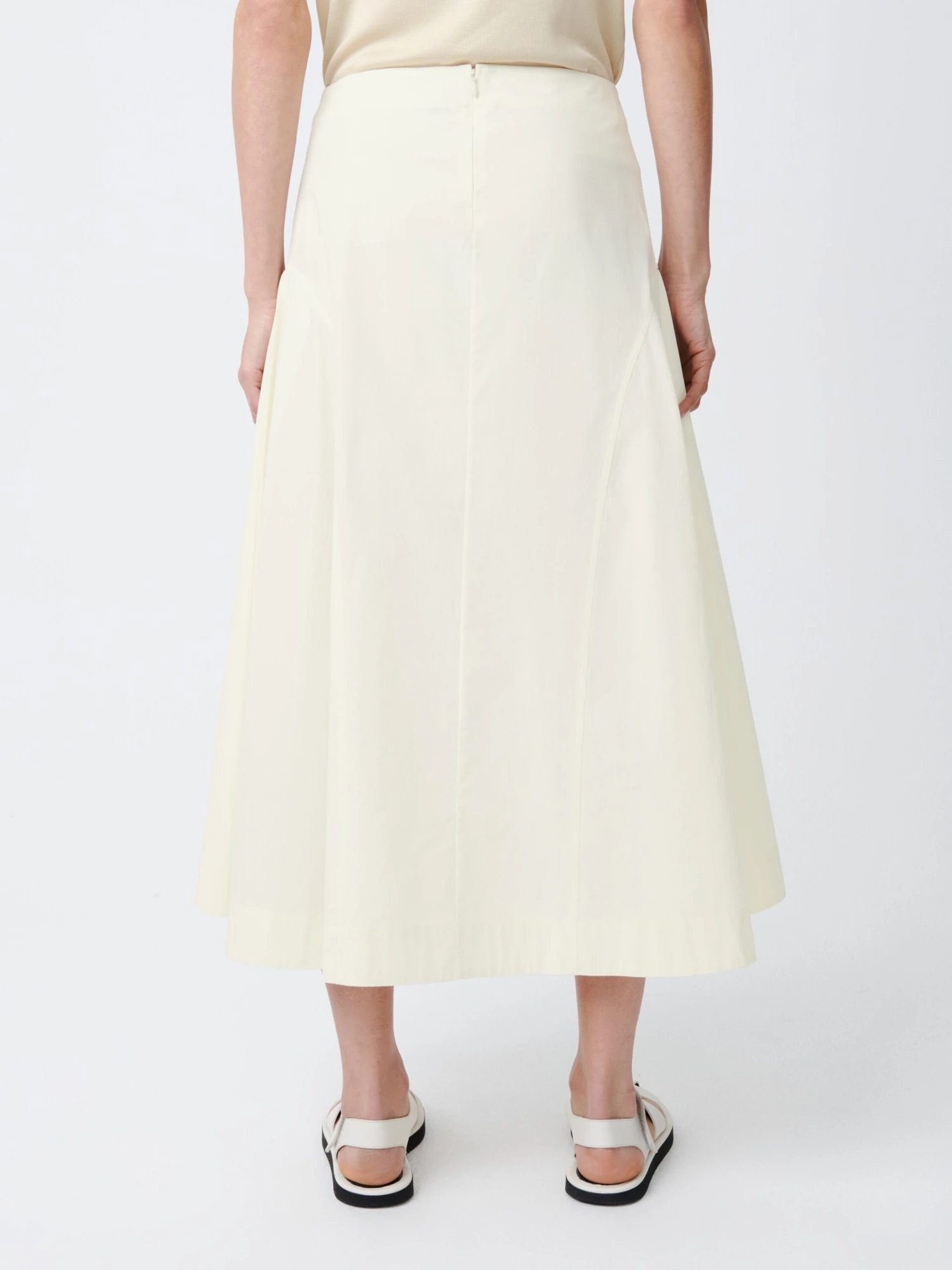 A highly feminine design with a classic feel, Centro exaggerates the silhouette of a typical A-line skirt. With side pleats adding additional volume, this piece is cut from our matte finish powder cotton, something of a SN favourite.