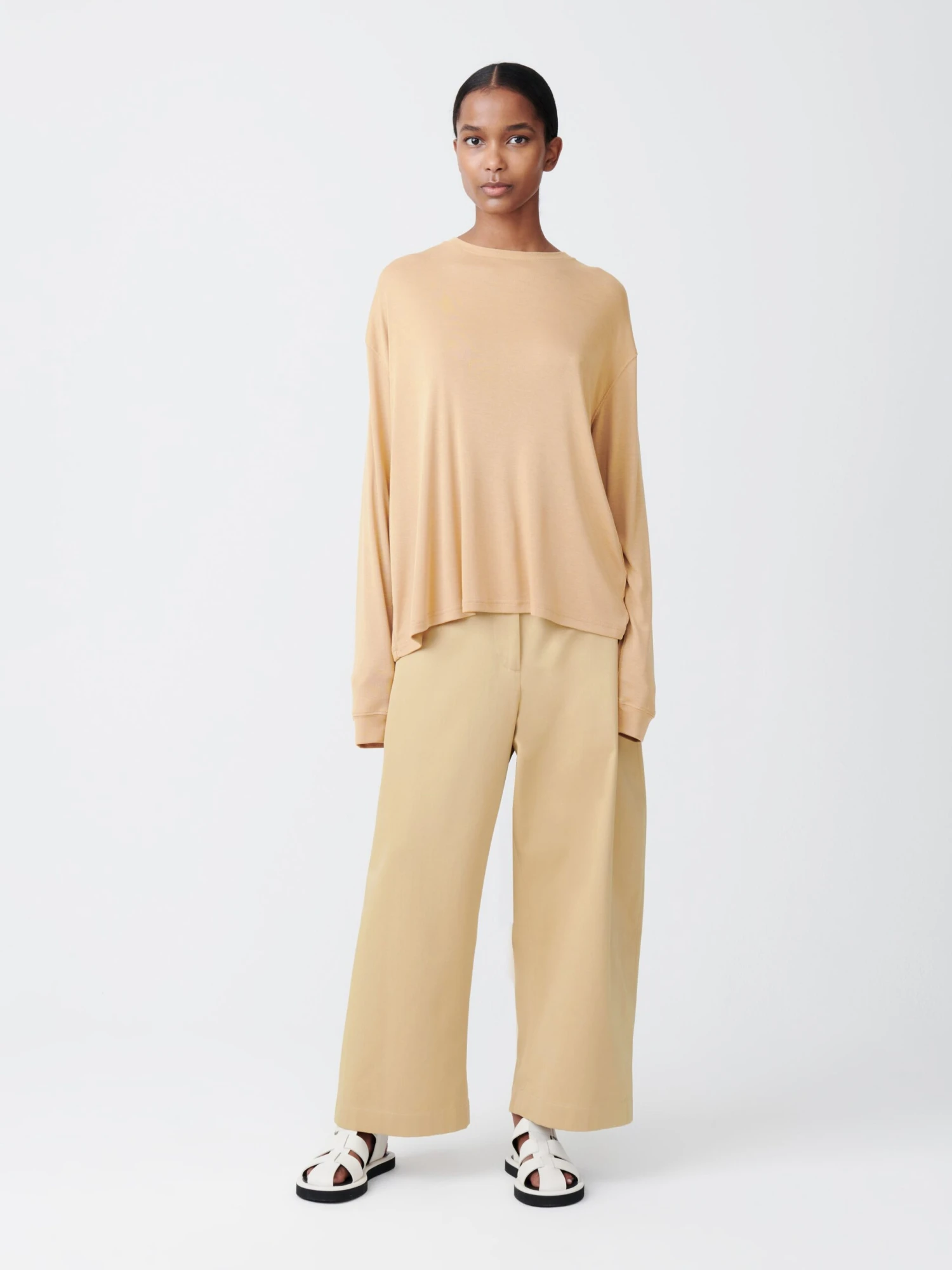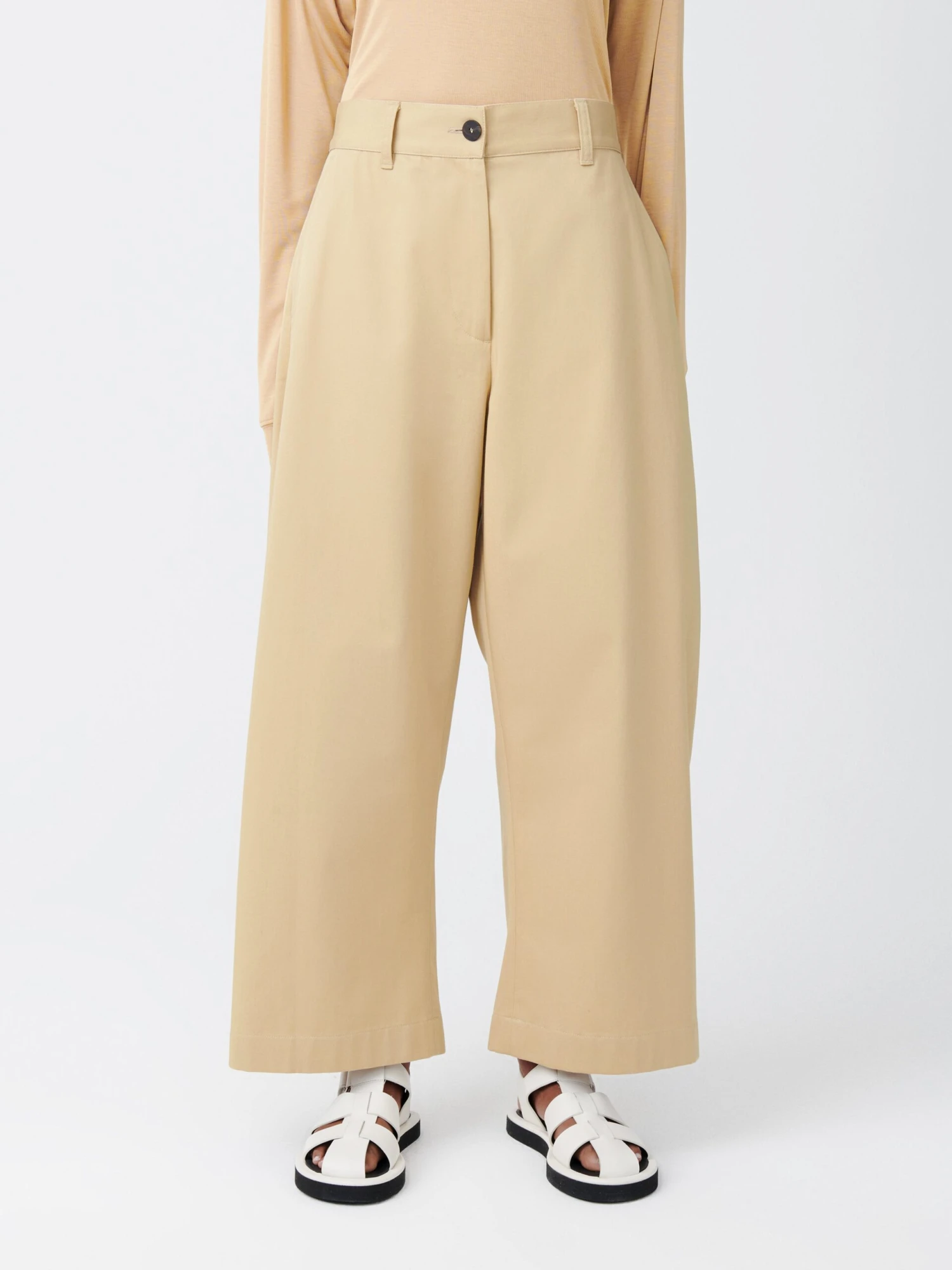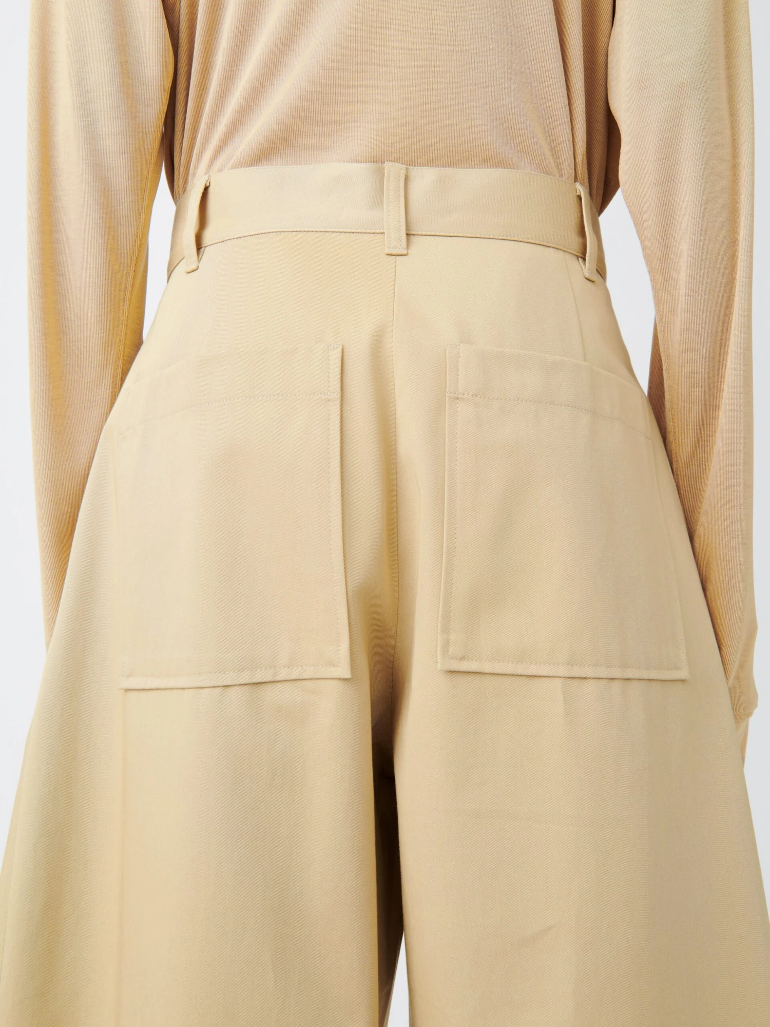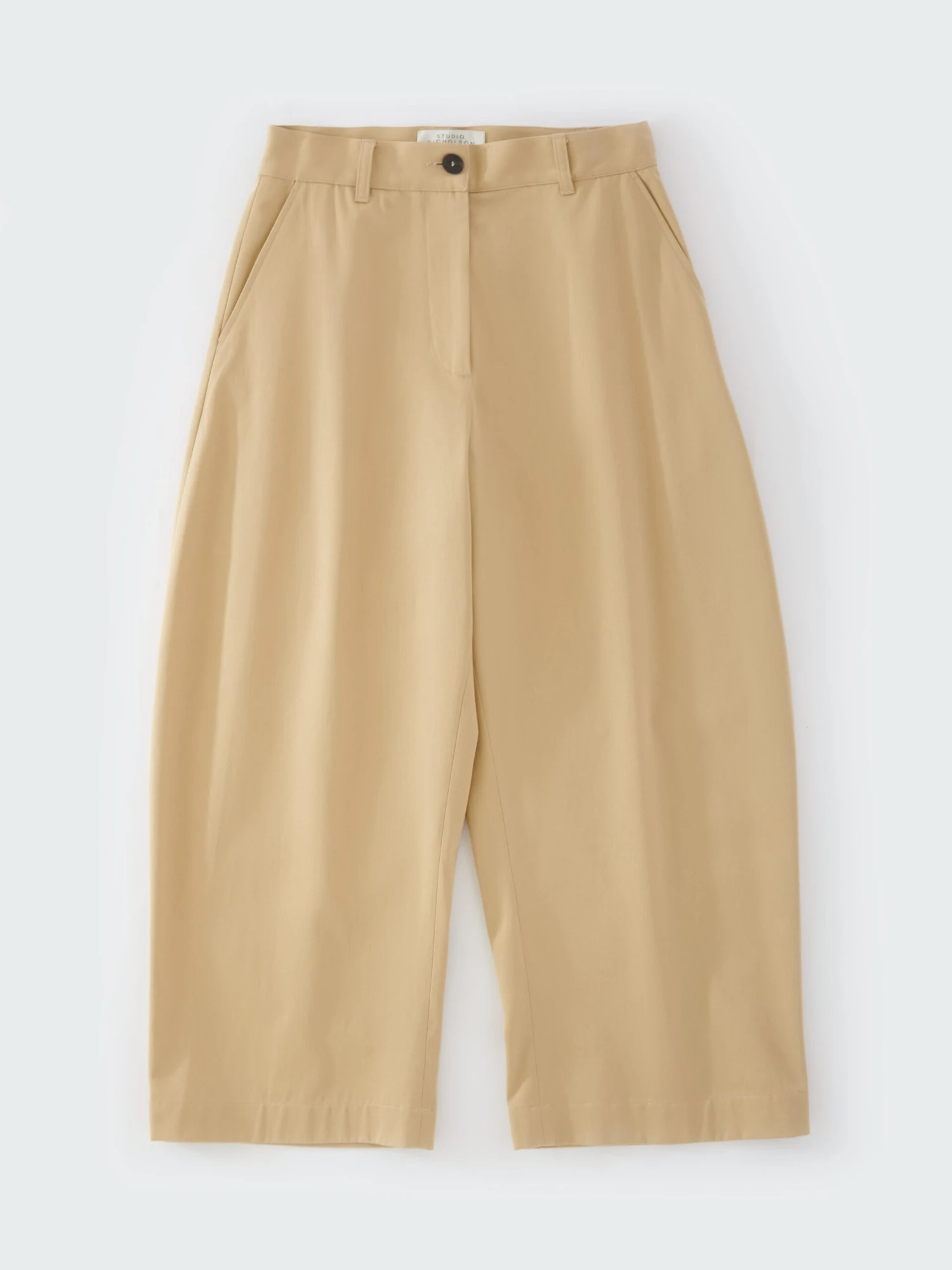 A true SN staple from season to season, our Chalco pants are cut wide and cropped, with a curved leg and dropped crotch. Here they are constructed from a sharp cotton twill.