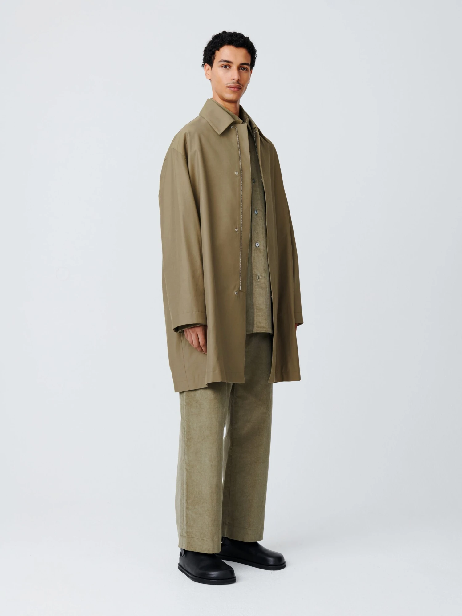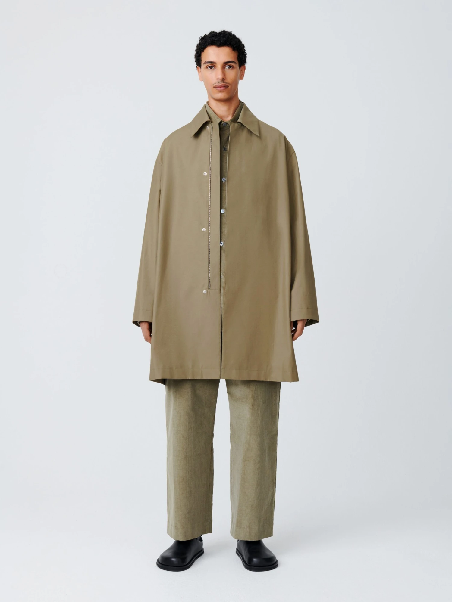 Relaxing the proportions of a typical car coat, our Chassis coat presents a modern, generous silhouette that allows for a full range of movement. Key details such as side pockets and front fastening are concealed for a minimalist finish.