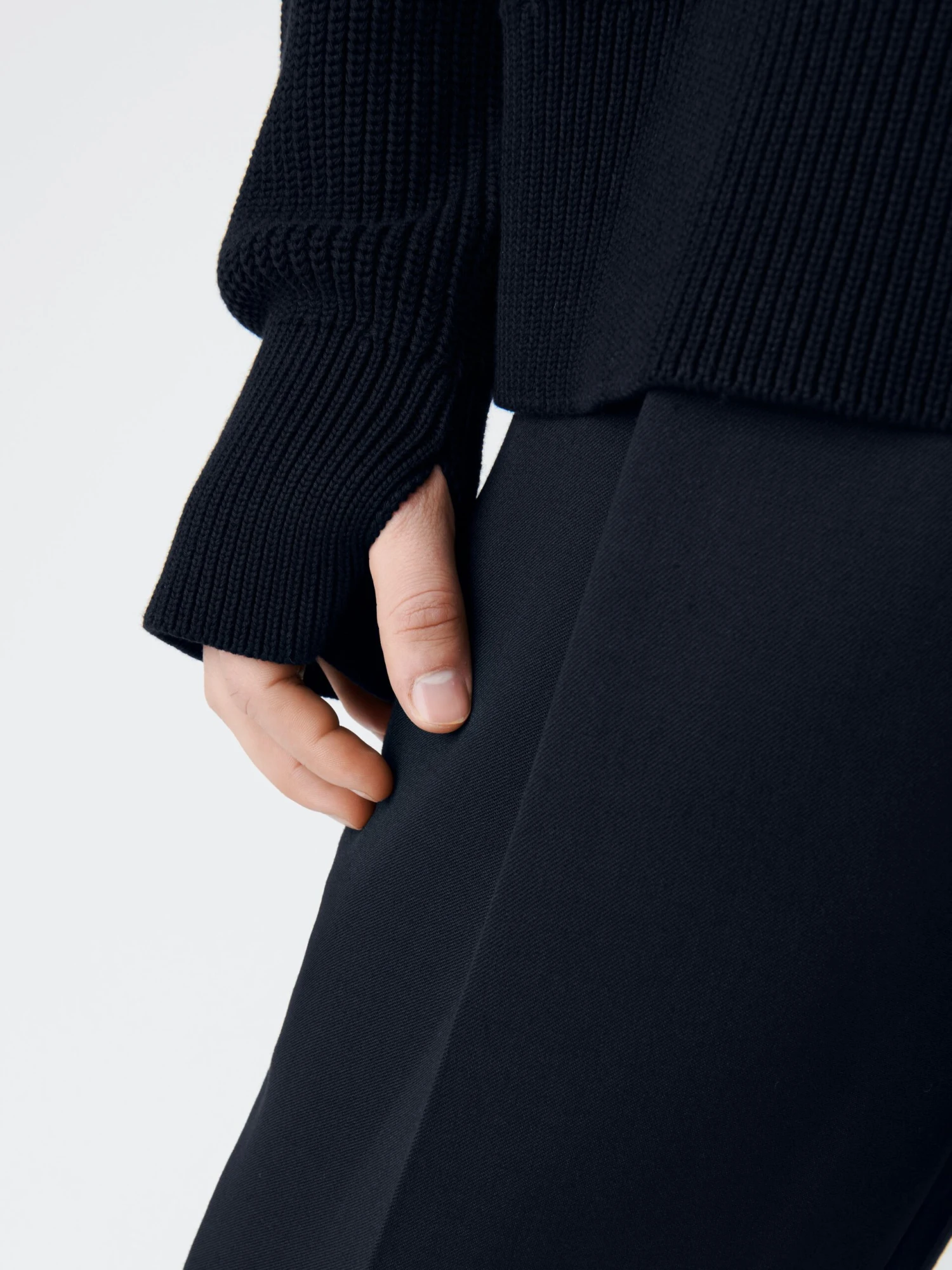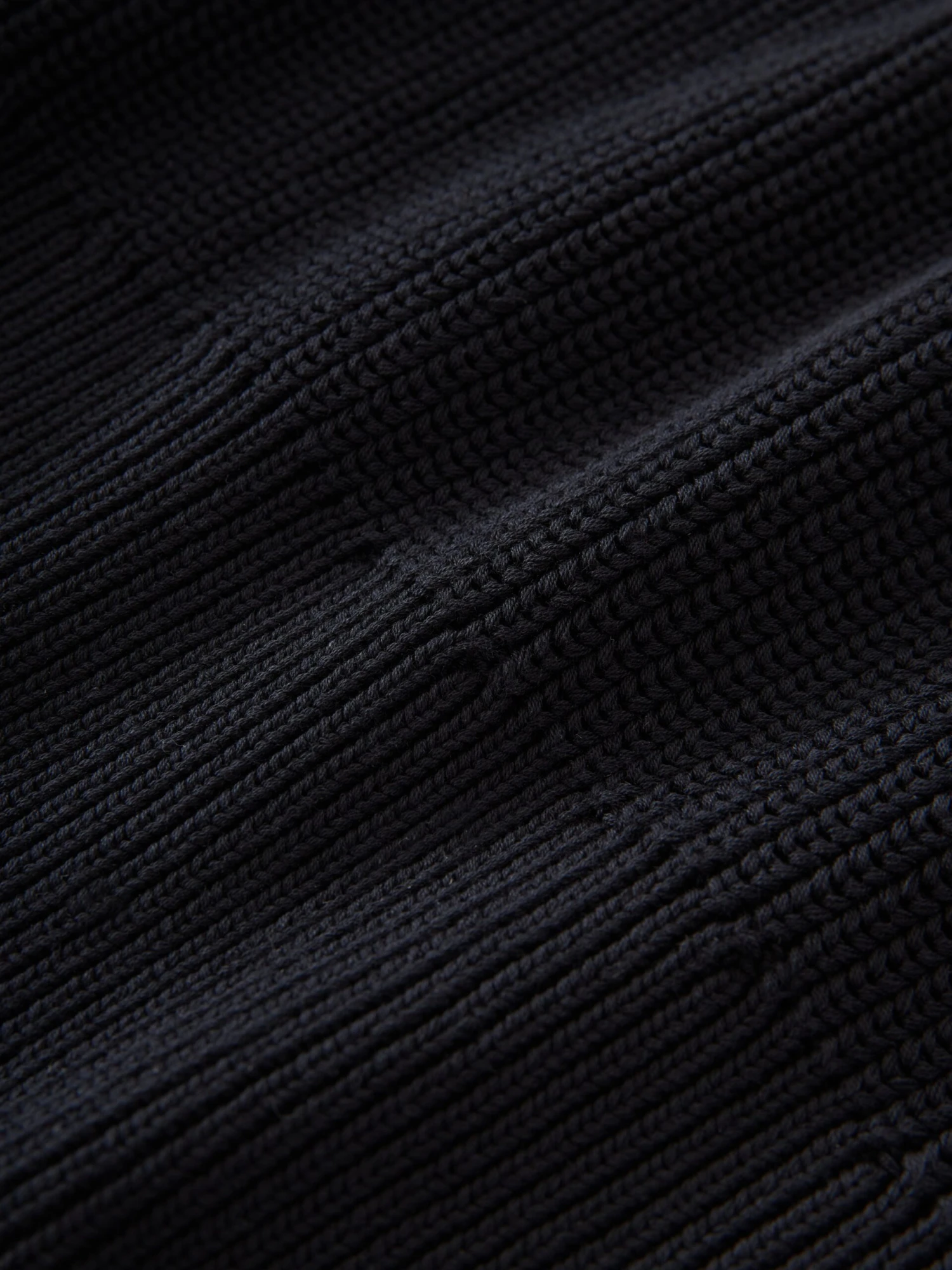 With a chunky, textured rib knitted from a matte cotton yarn, Coe is a classic crew neck in a substantial weight. Its boxy shape is complemented by a casual saddle shoulder, which together create a relaxed, laidback appeal.