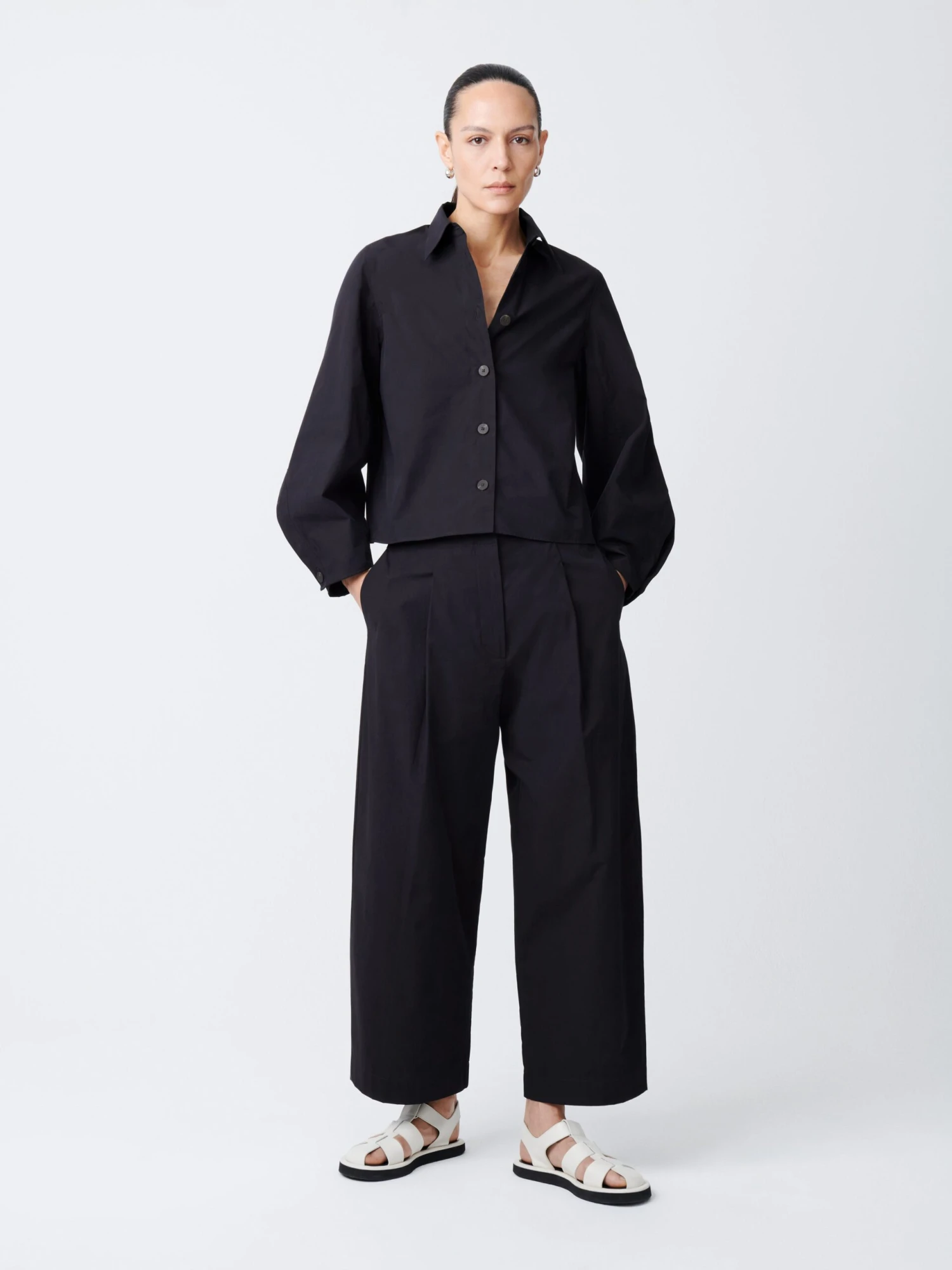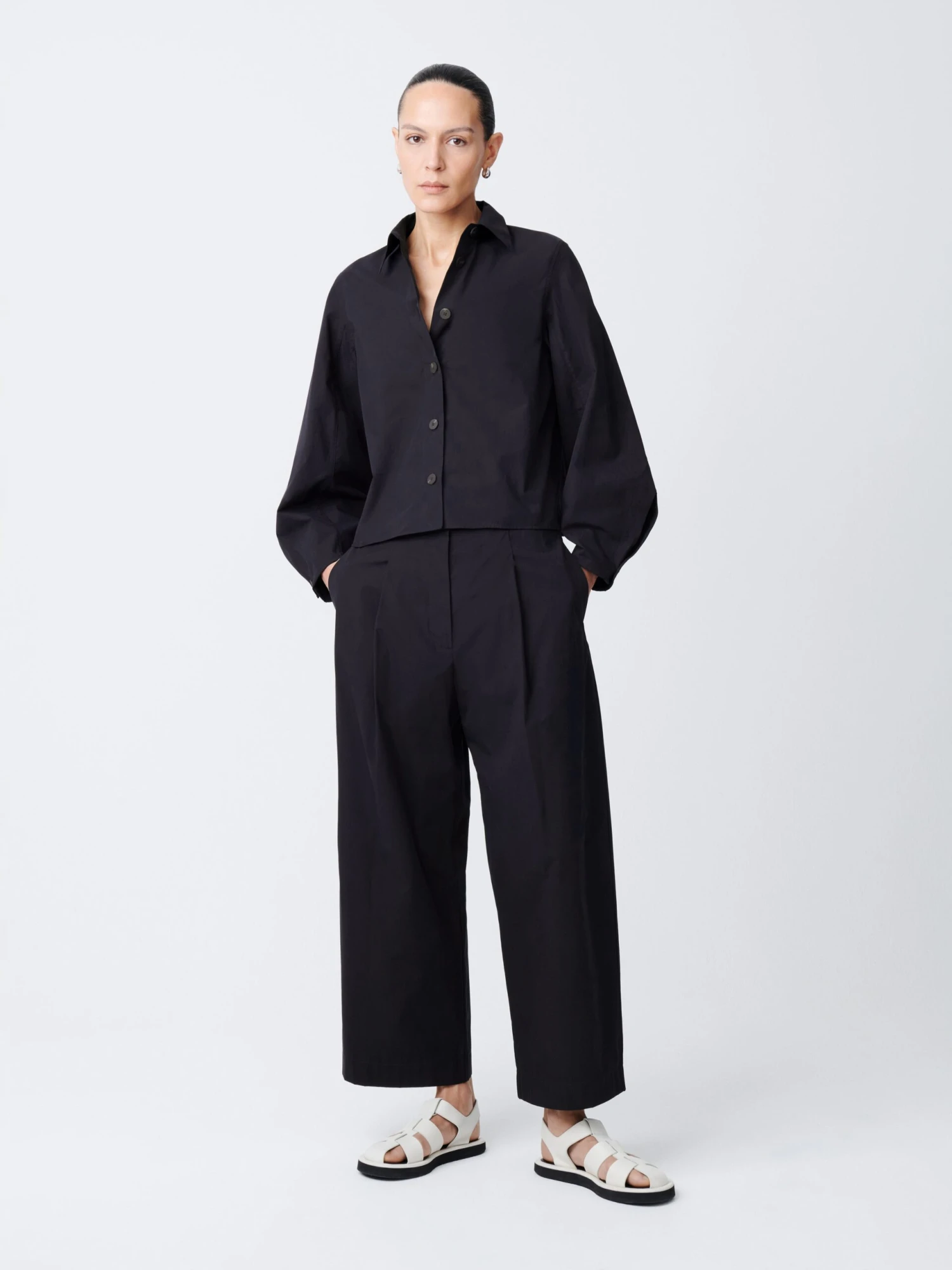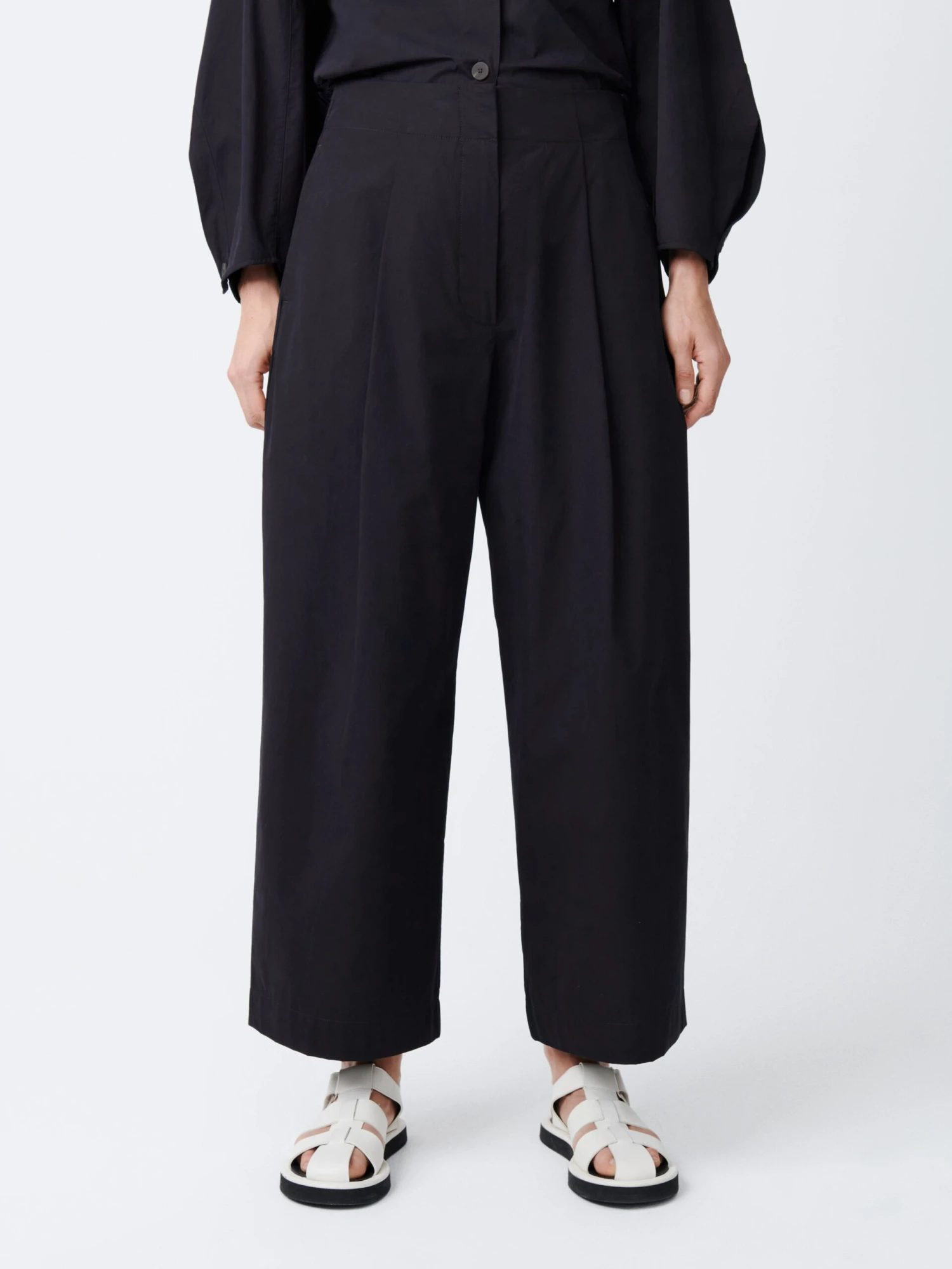 Our ever-popular Dordoni pants feature a high waist, drop crotch, and gently curved leg shape. Deep single pleats reference traditional tailoring. This pair is cut from powder finish cotton.