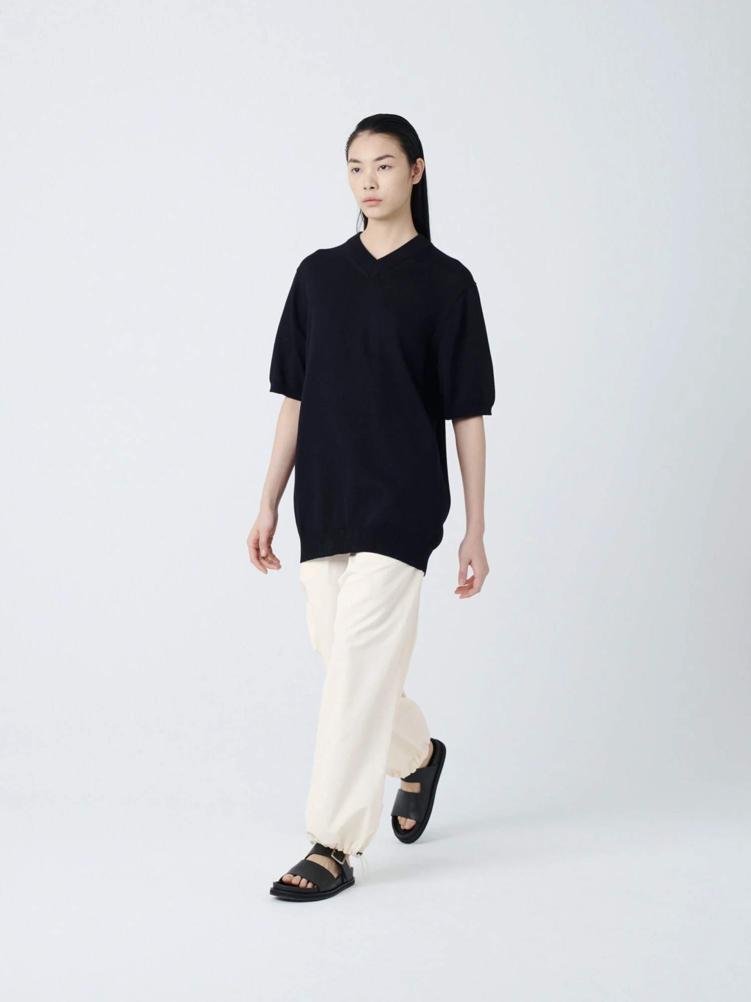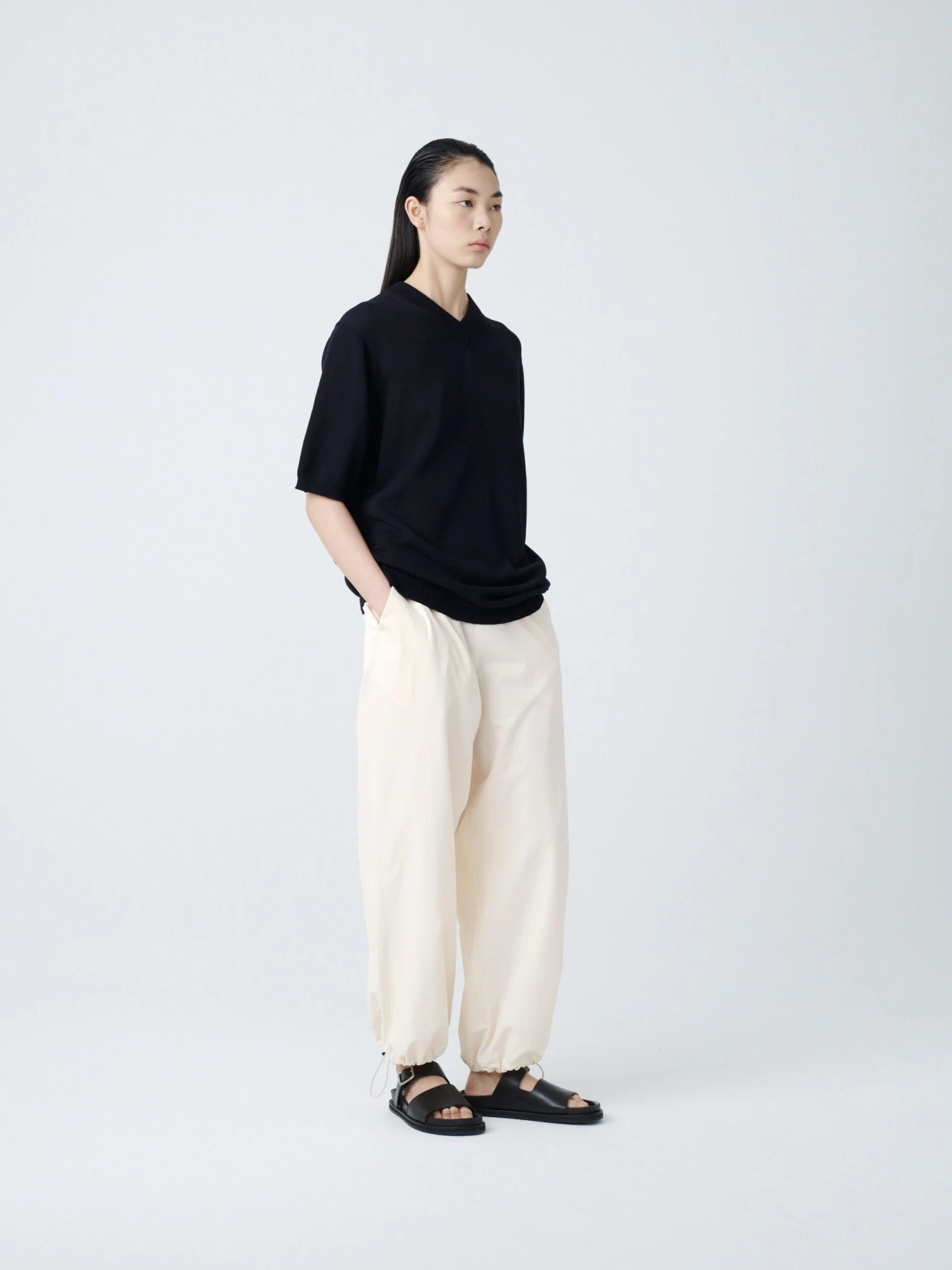 High-waisted wide-leg track pant made from a fluid cotton viscose linen fabric.