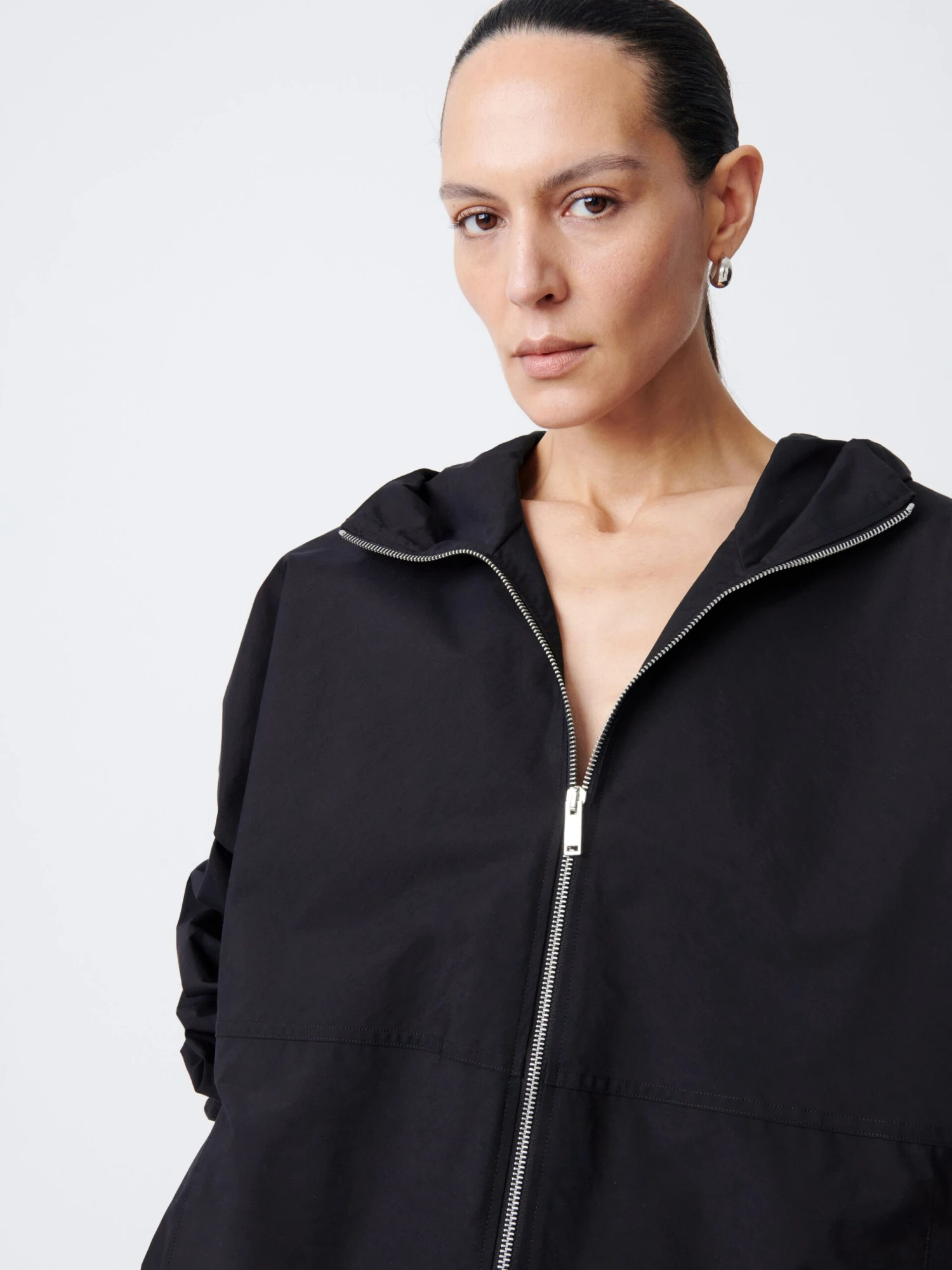 Based on a classic men’s anorak, Godwin elevates things with a single-piece construction and kimono sleeve. It is cut from a high-end, lightweight performance fabric with a crisp texture.