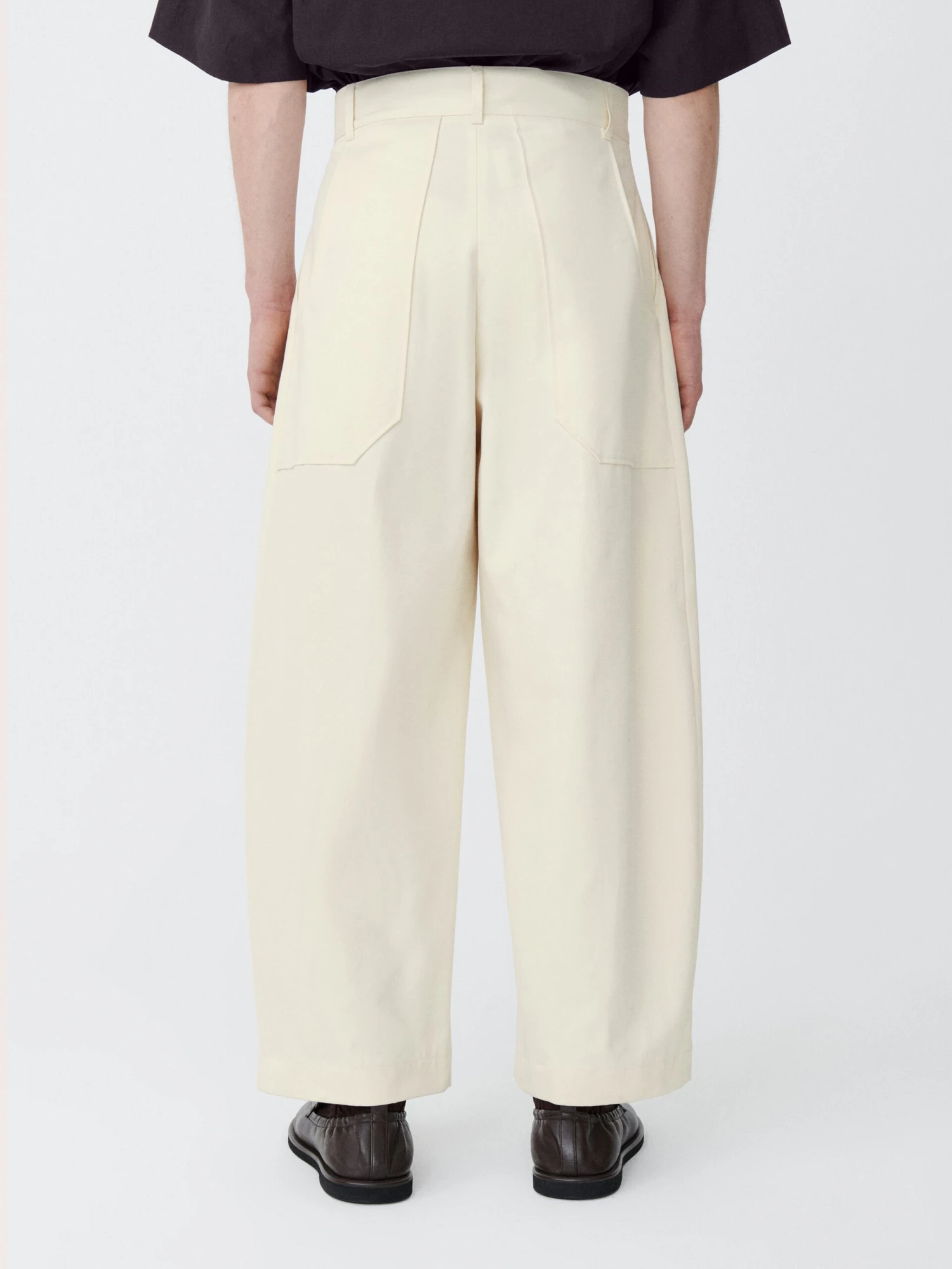 An elevated take on utilitarian carpenter’s trousers, the Guild pants have large patch pockets at the back, which are built into the side seams. They are constructed from a hefty cotton twill that’s been brushed for a tactile ‘peached’ finish.