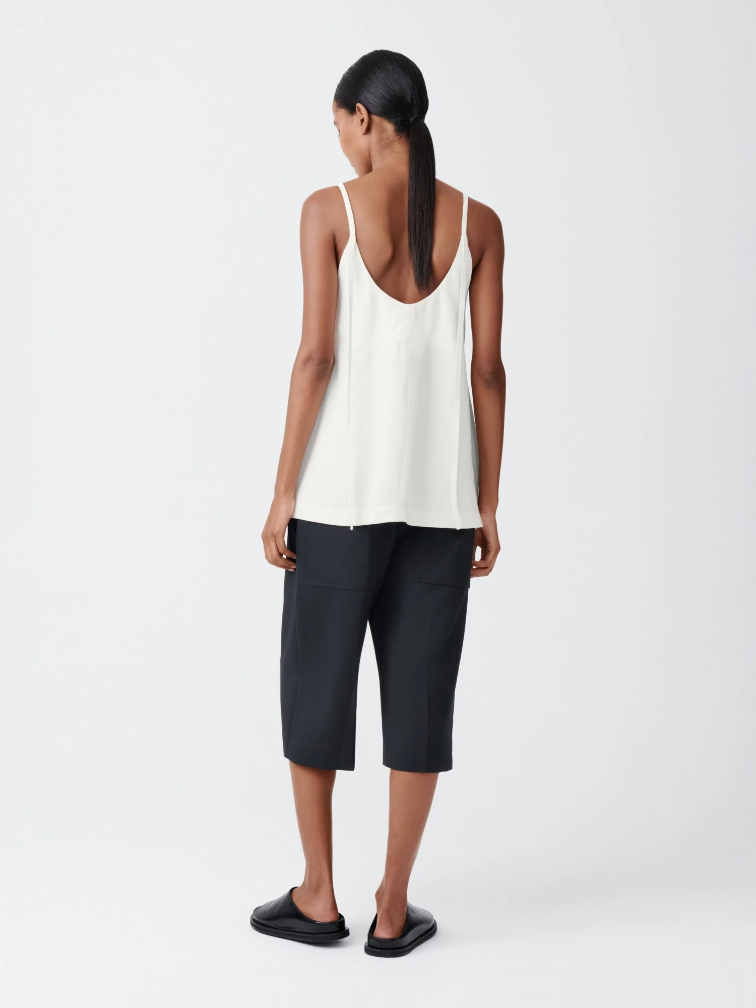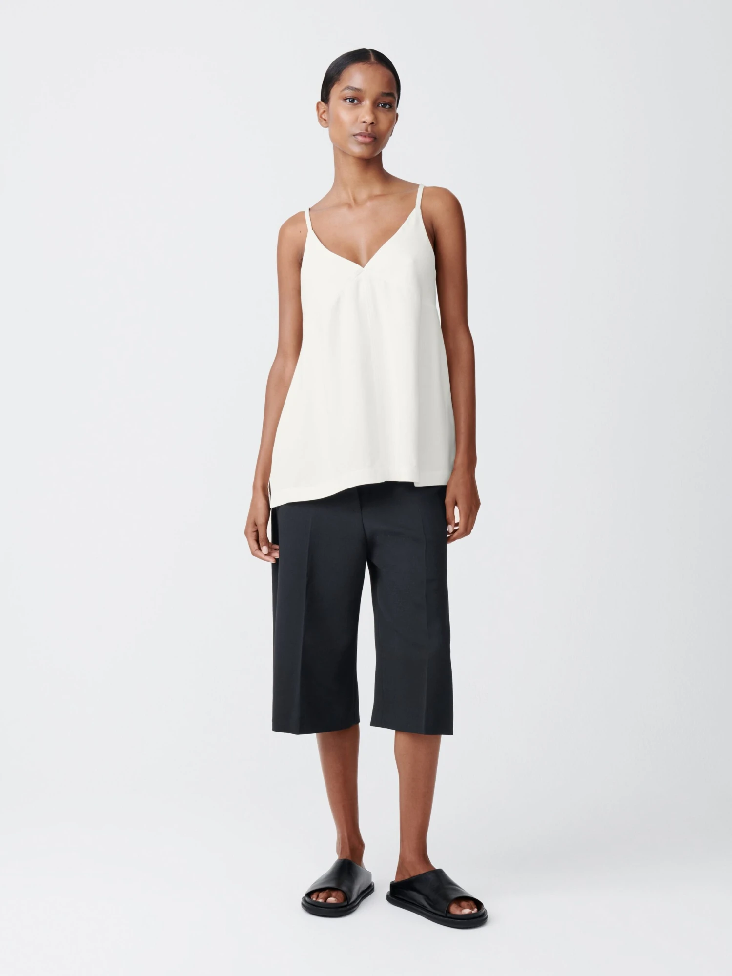 A camisole version of our Malebo slip dress, Holzer is a delicate design that hangs off the body. It’s made from a wool-viscose with a visible twill and slight sheen, chosen for its fluidity of movement.