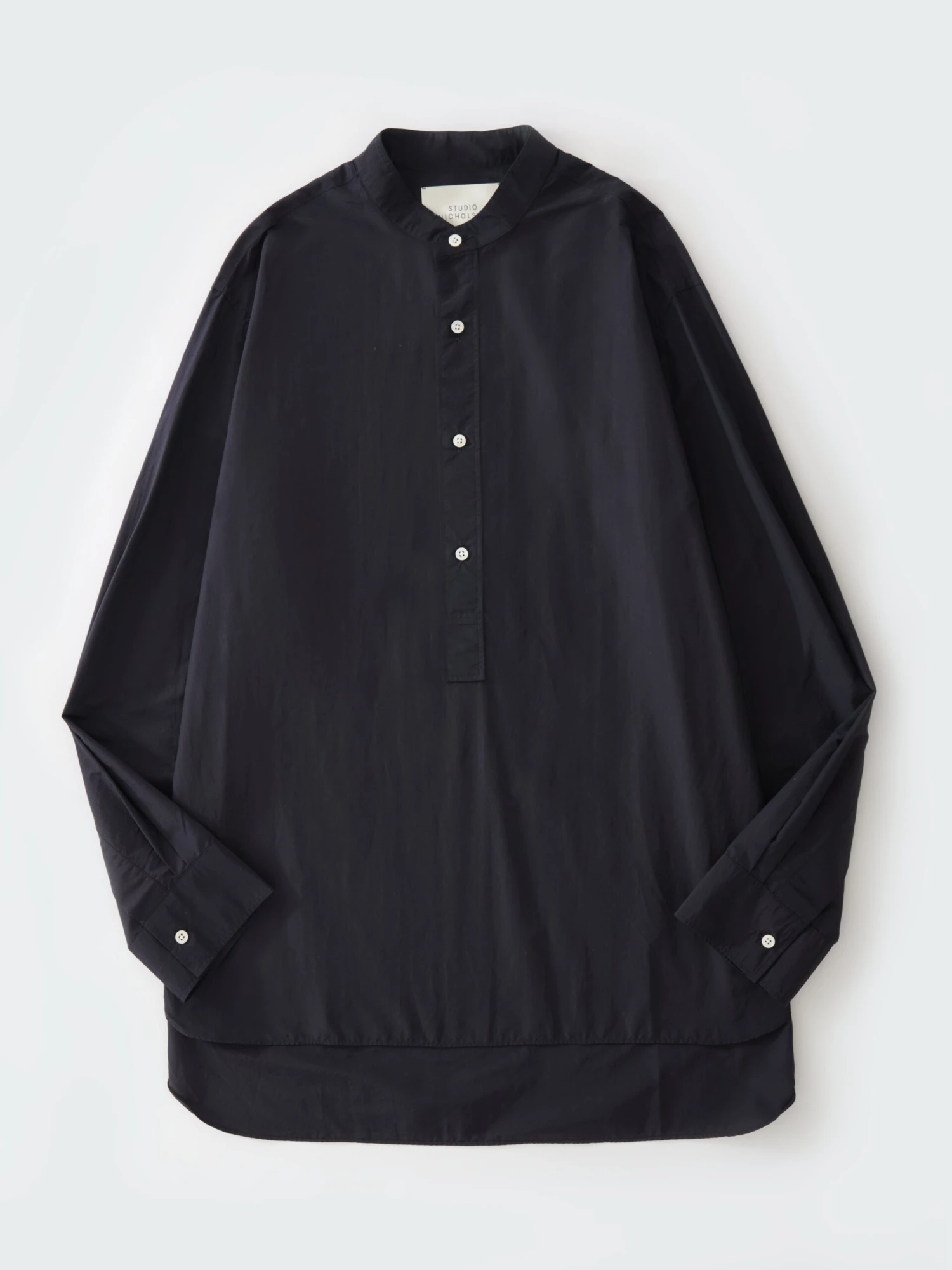Key’s half-placket popover design and grandad collar give it a laidback and distinctly modern feel, one that is accentuated by its oversized fit. We have constructed it from a lightweight ‘parachute’ fabric, with a slight sheen.