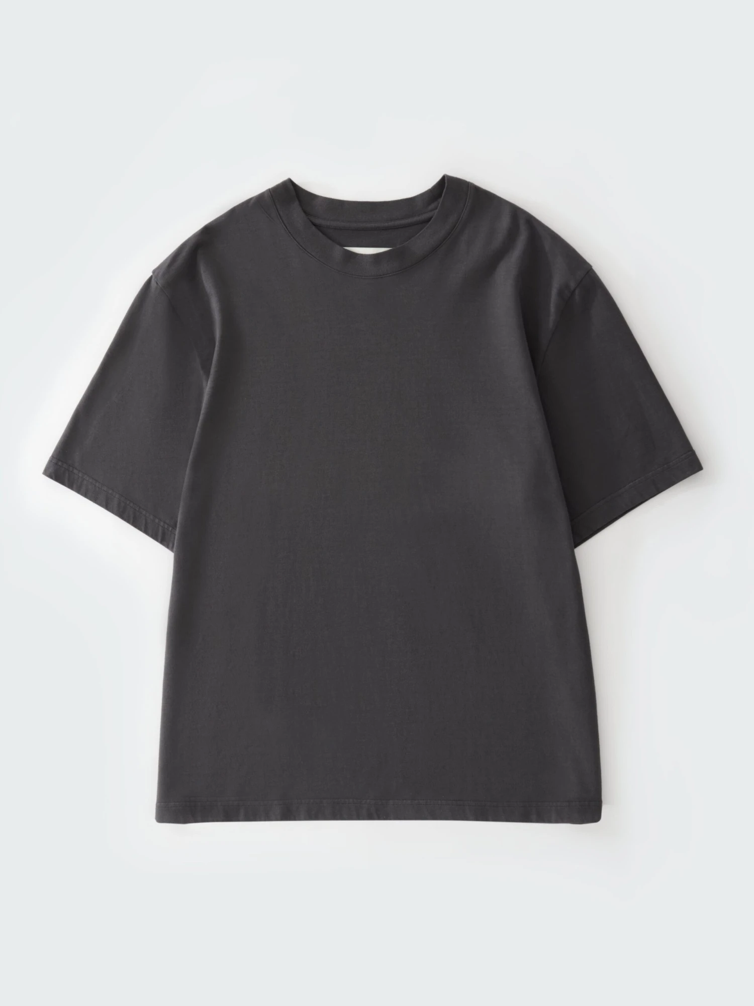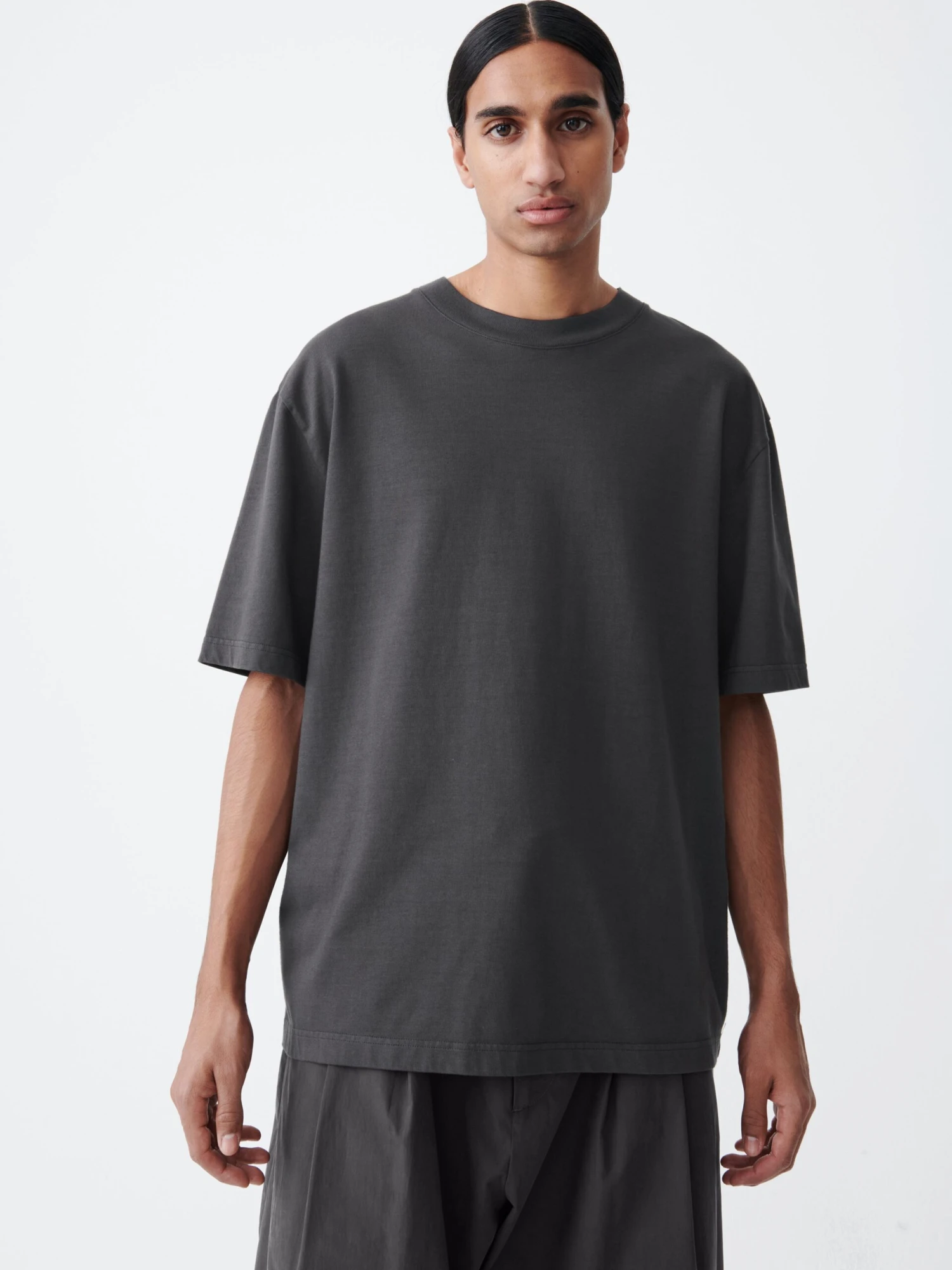 Lay’s boxy proportions are rendered in dense, weighty cotton jersey. The t-shirt is finished with a tonal branding detail at the back of the neck.