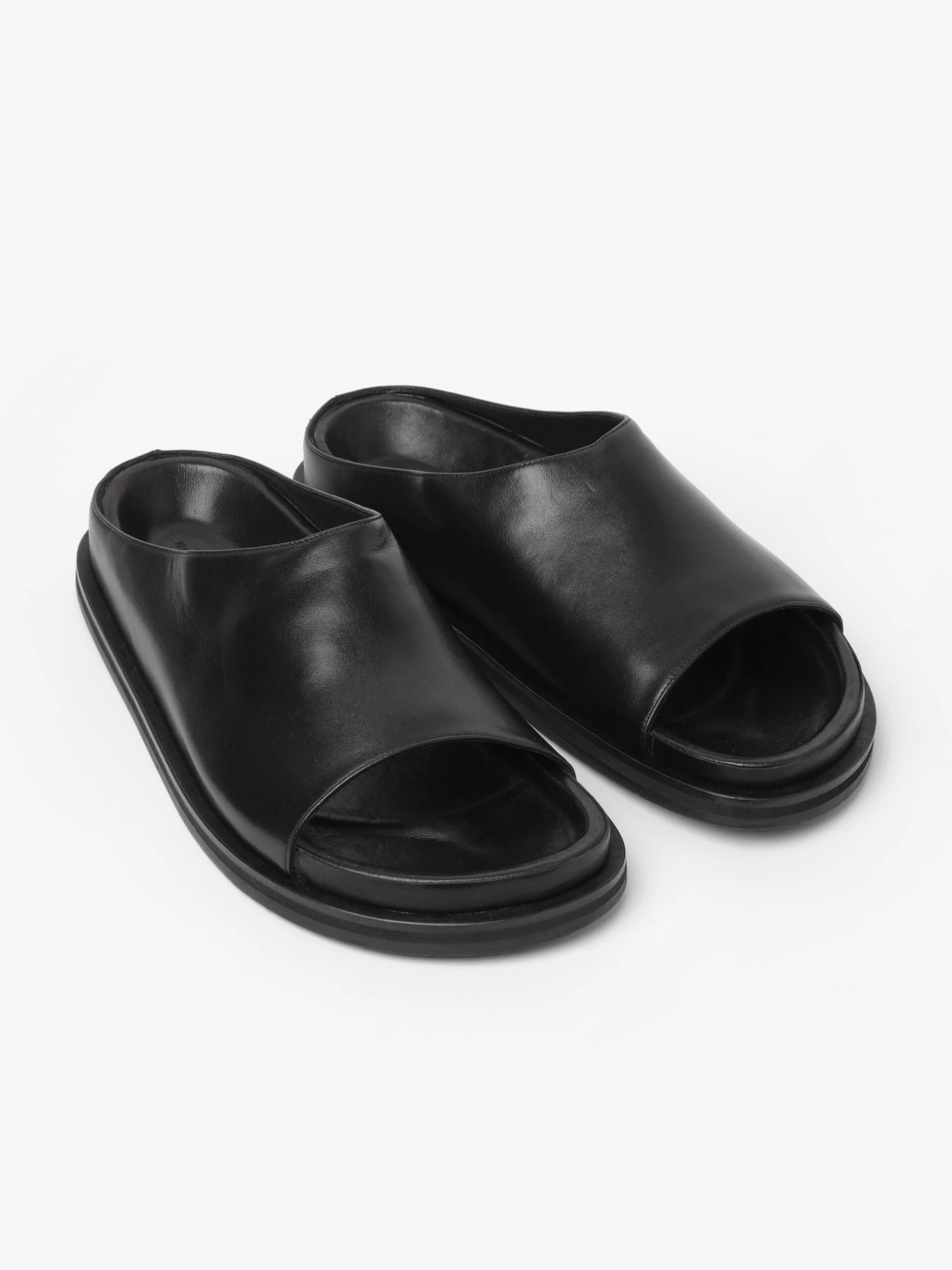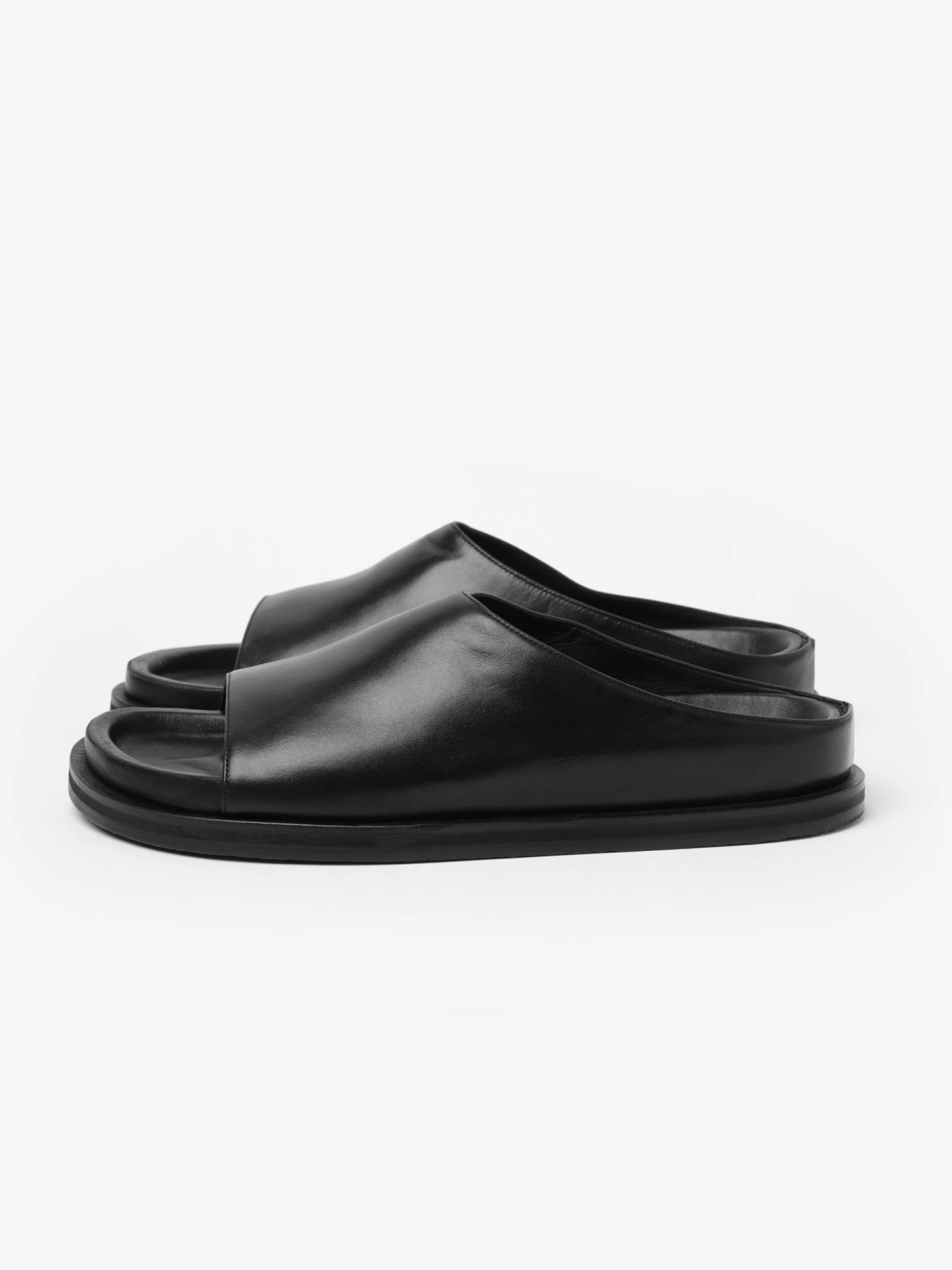 Like an elevated version of a shower slide, Spring is simple but meticulously designed. The upper is made from a sleek calf leather, which also covers the moulded footbed. A cushioned EVA sole is wrapped with an extended leather welt.