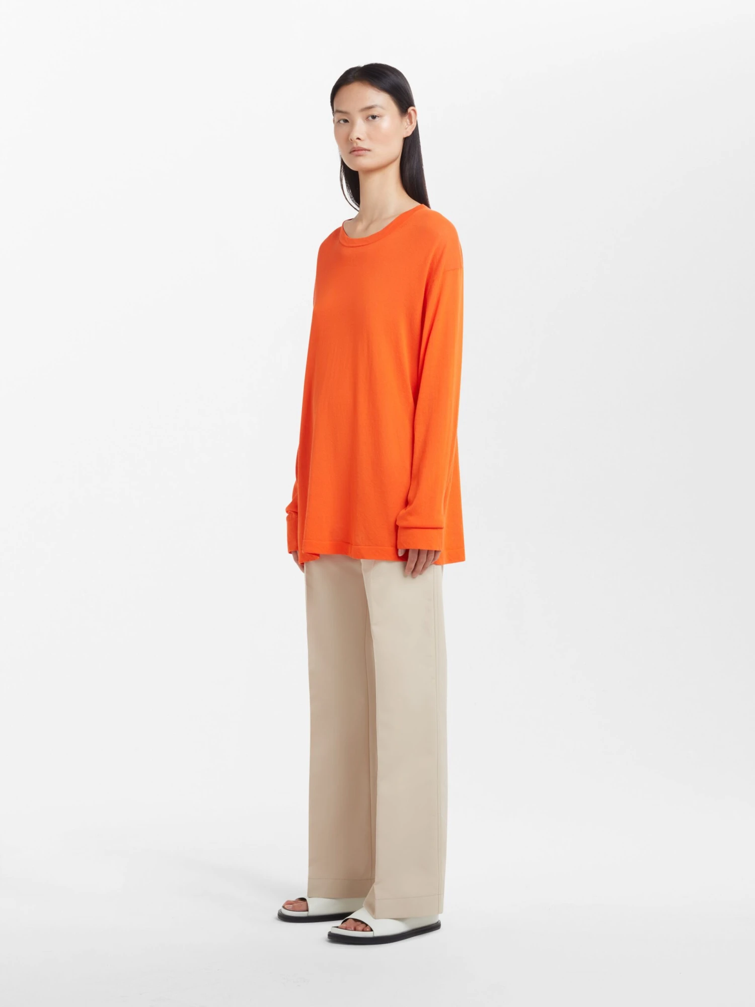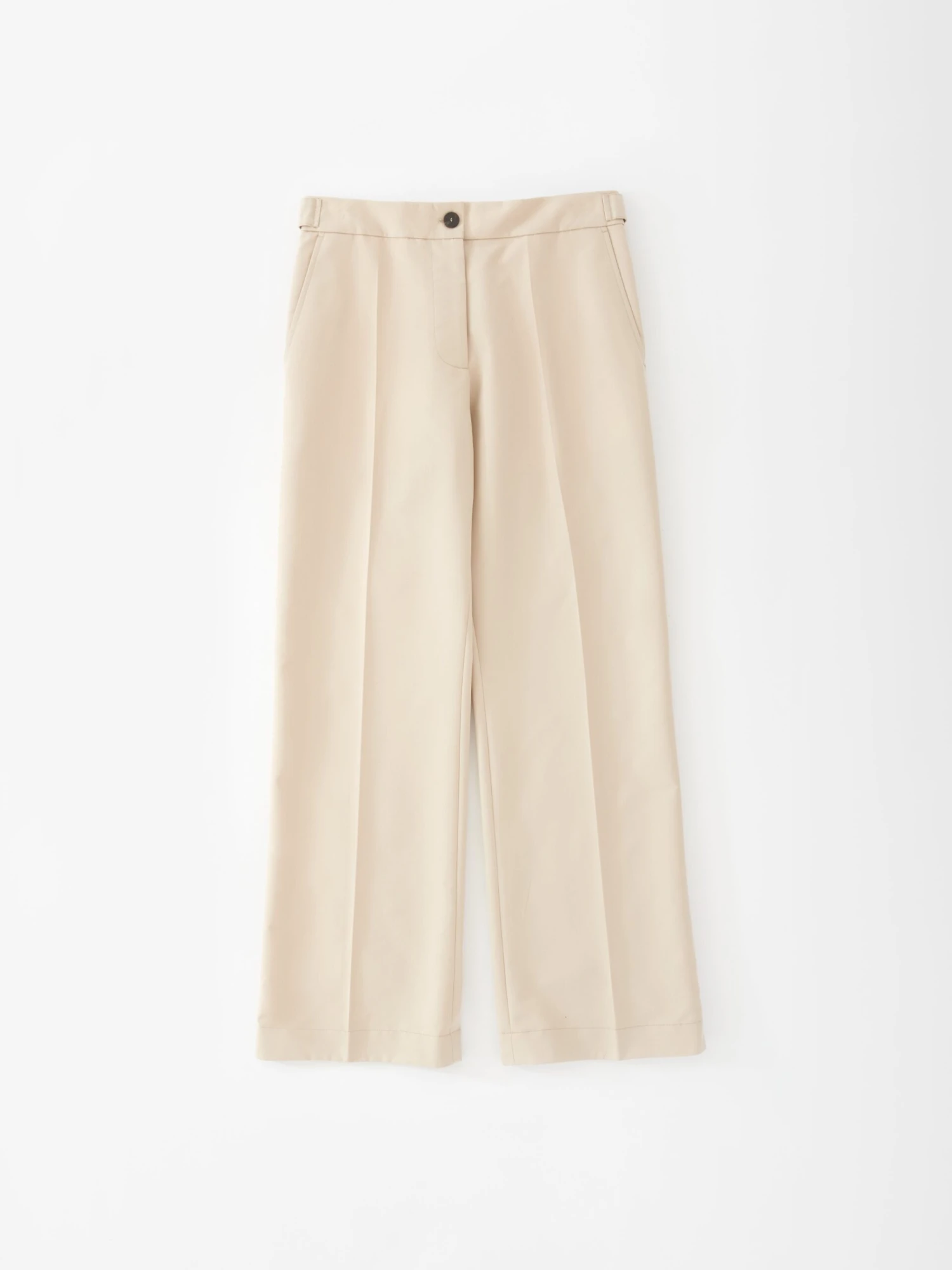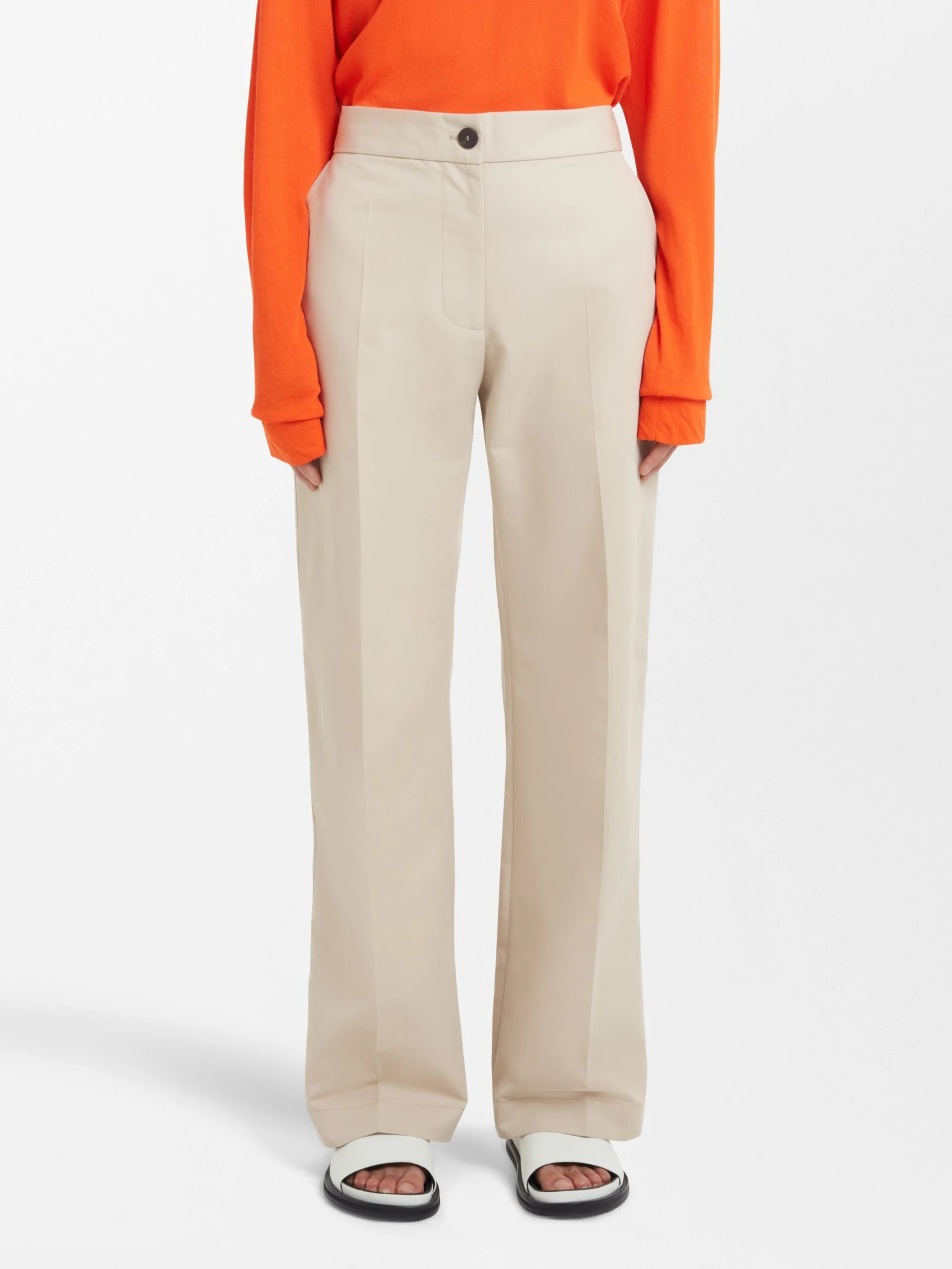 Low-rise slim leg pant made from a showerproof cotton twill.