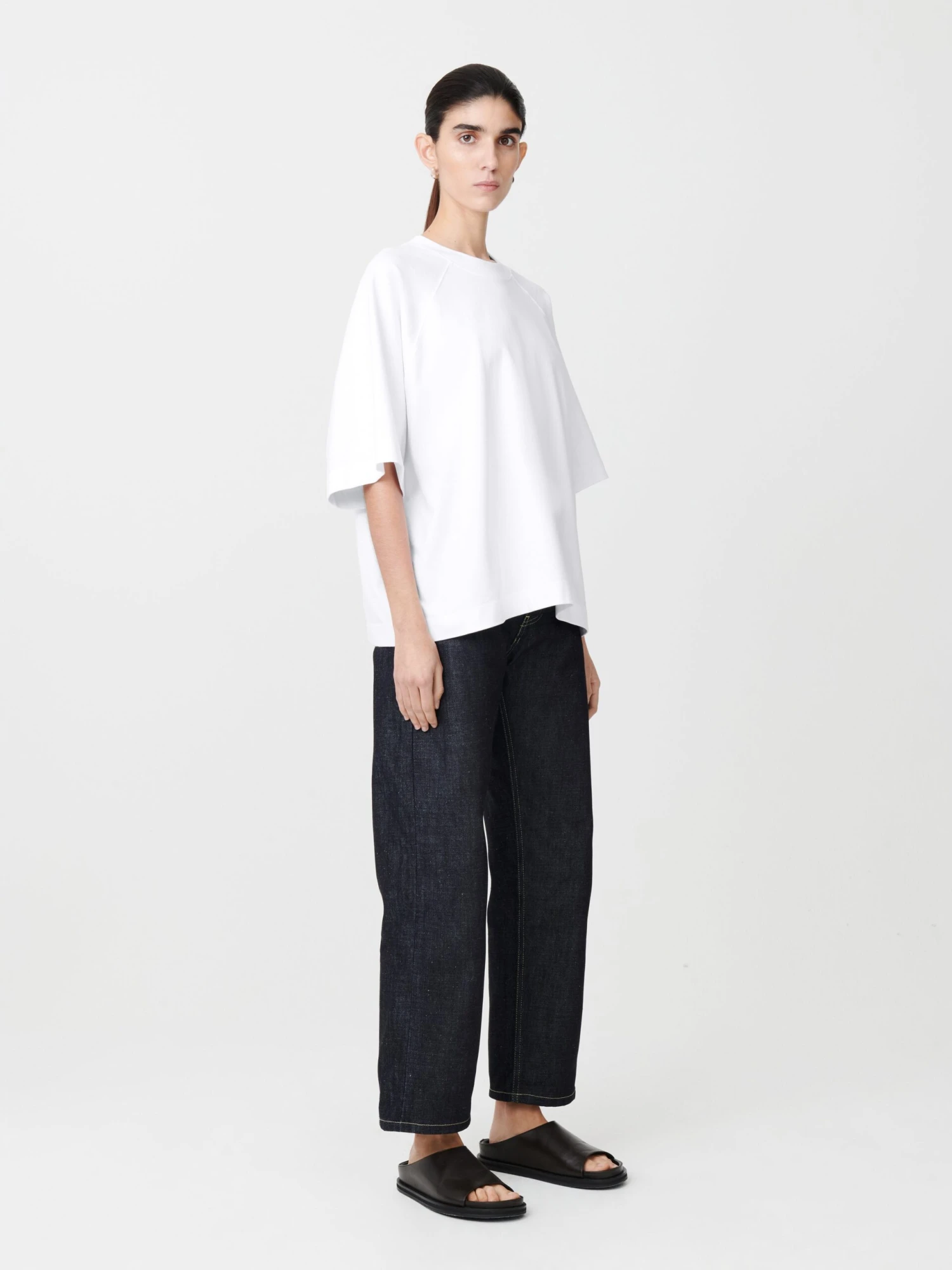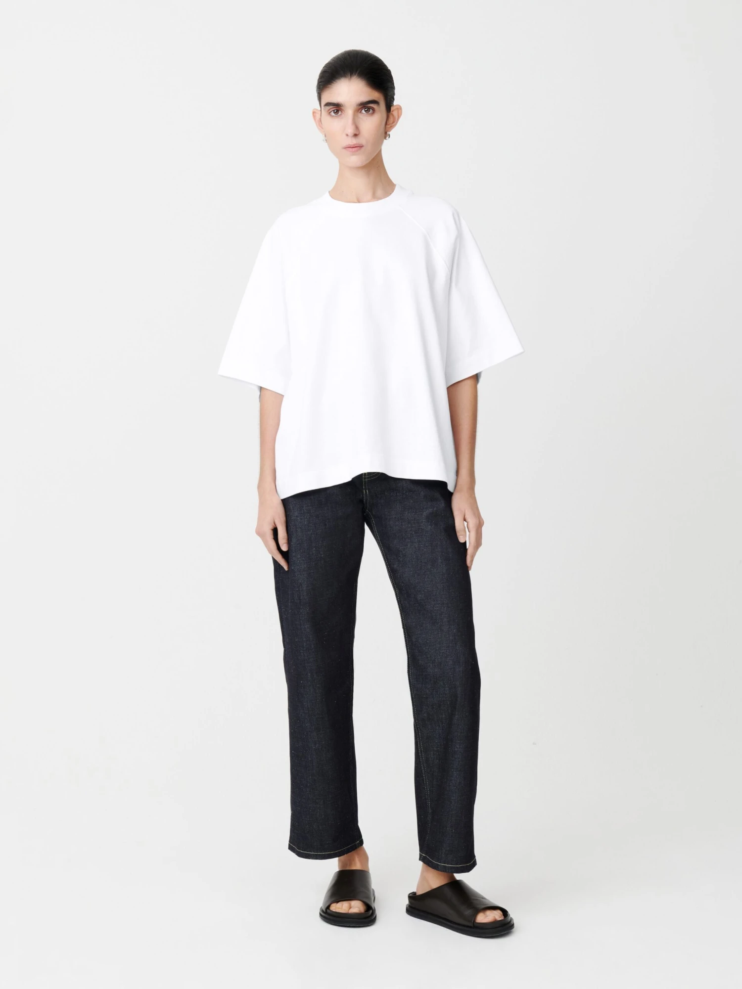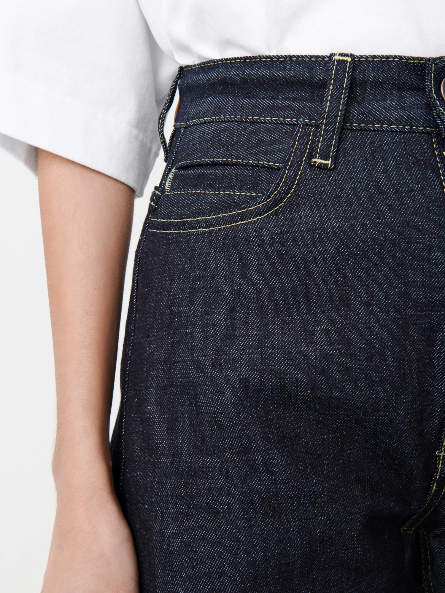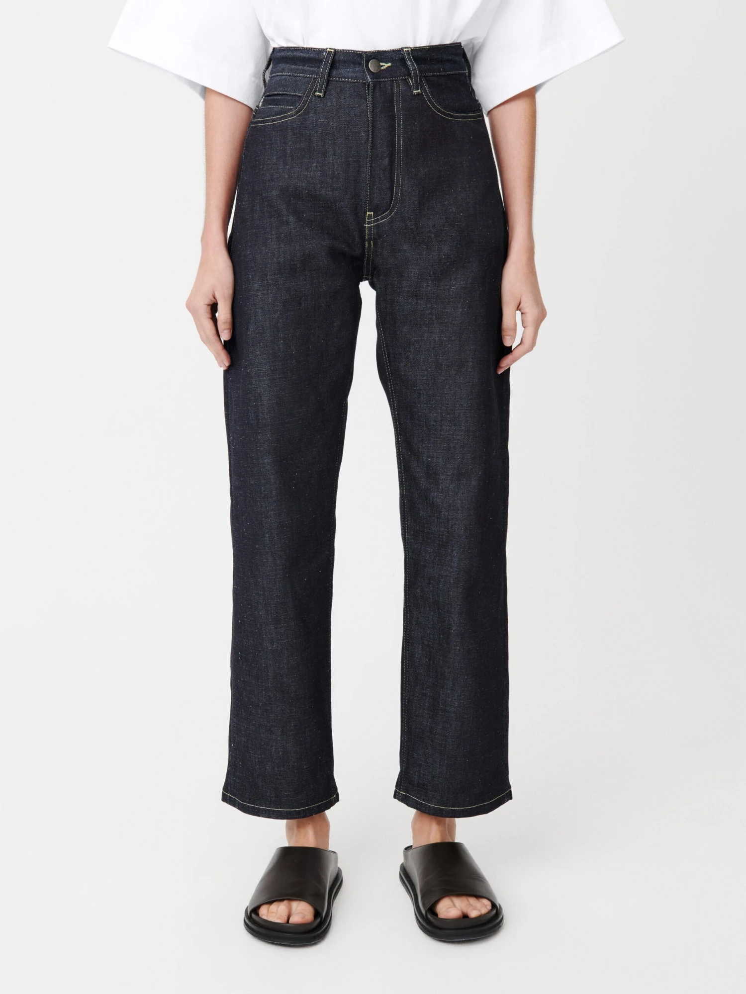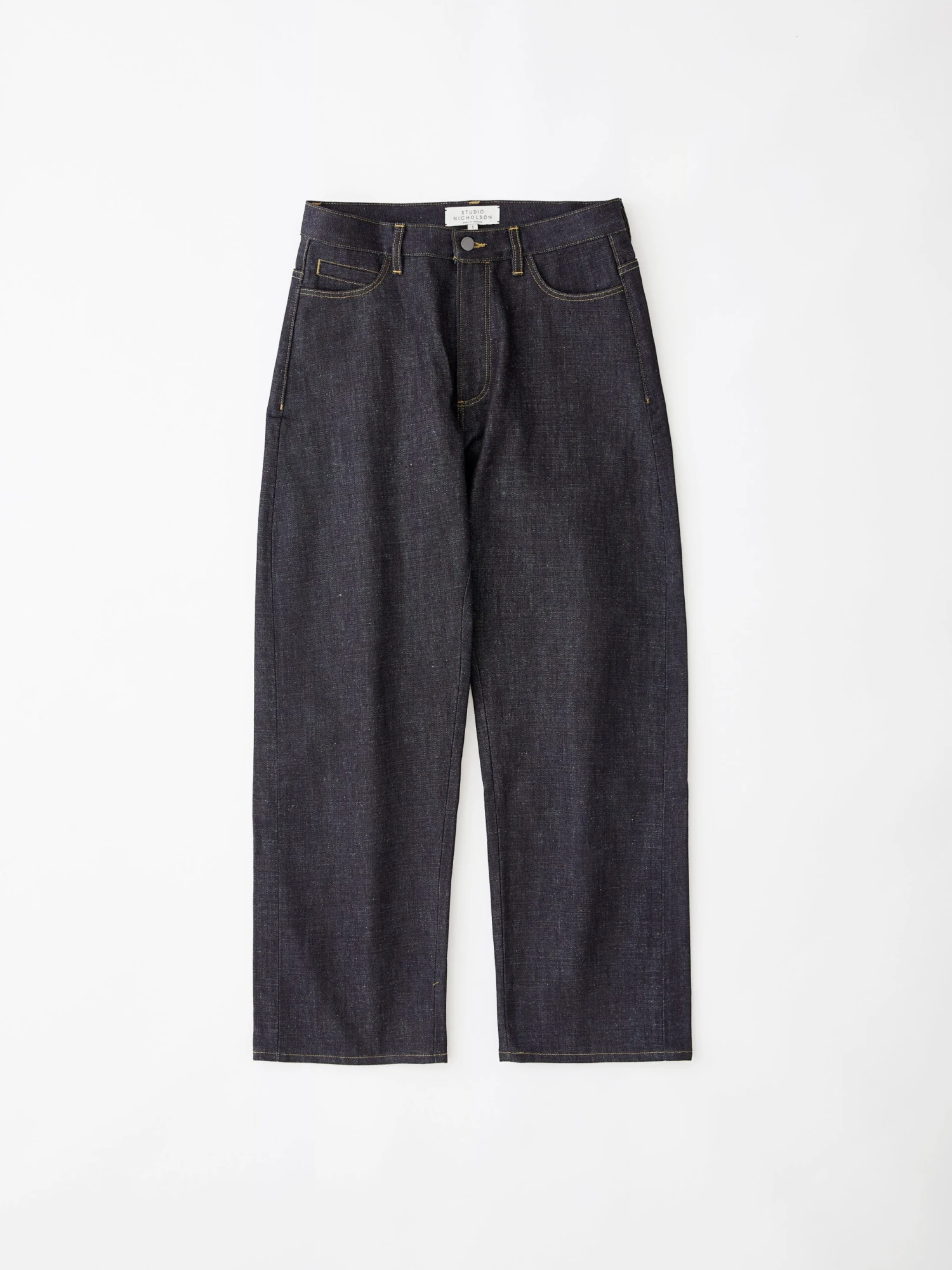 High waisted straight leg pant made from a 14oz denim fabric.