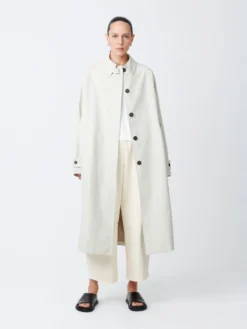 Sabo is a short-sleeved shirt dress with a grandad collar, cut from our fluid wool viscose. It has a half placket which runs into a horizontal side seam at the waist, and an off-centre pleat detail that gives it an asymmetrical silhouette.