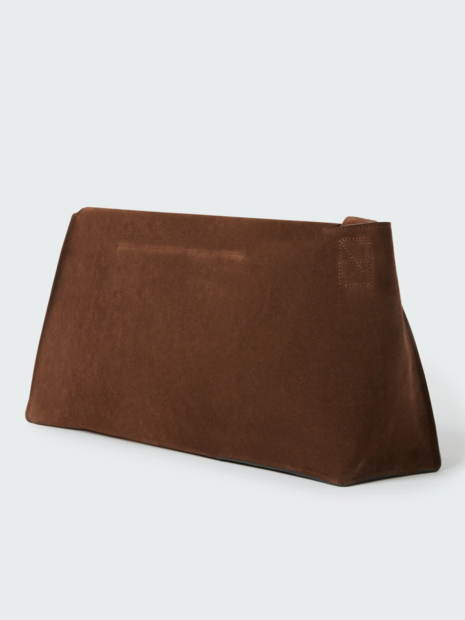 The Shiboru – meaning ‘to squeeze’ in Japanese – offers a relaxed take on a trapezium form. The construction combines perpendicular lines with the curved, permitting the bag to slouch when worn. Just two corners are fully seamed with a hand-painted edge whilst an adjustable shoulder strap is secured from the other opposing curved corners. The Shiboru’s folded concealed magnetic closure further allows the structure to determine its functionality.
