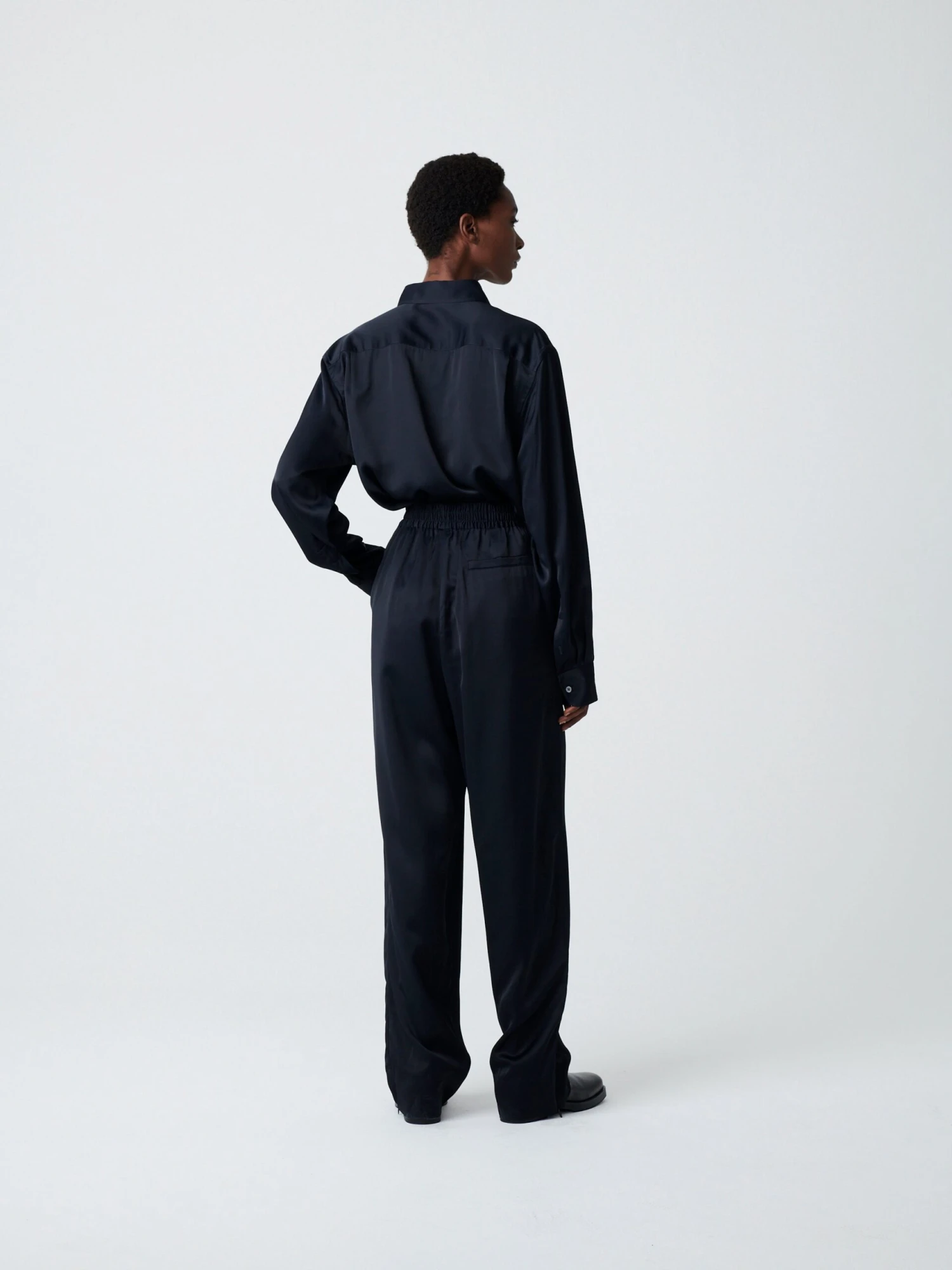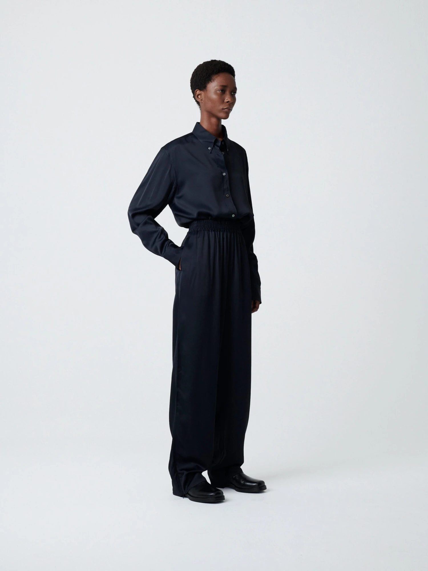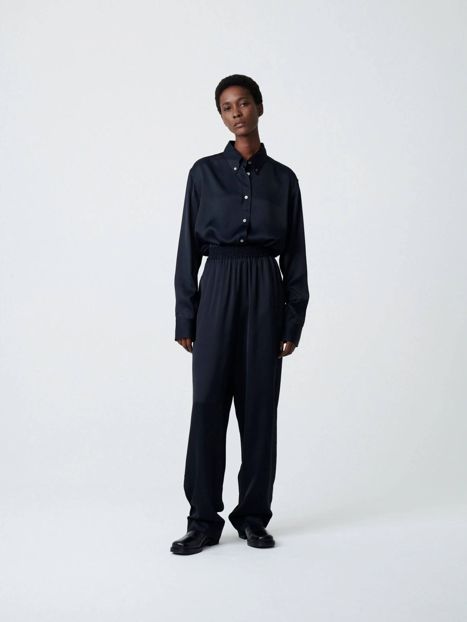 Relaxed wide-leg pant made from a fluid viscose.