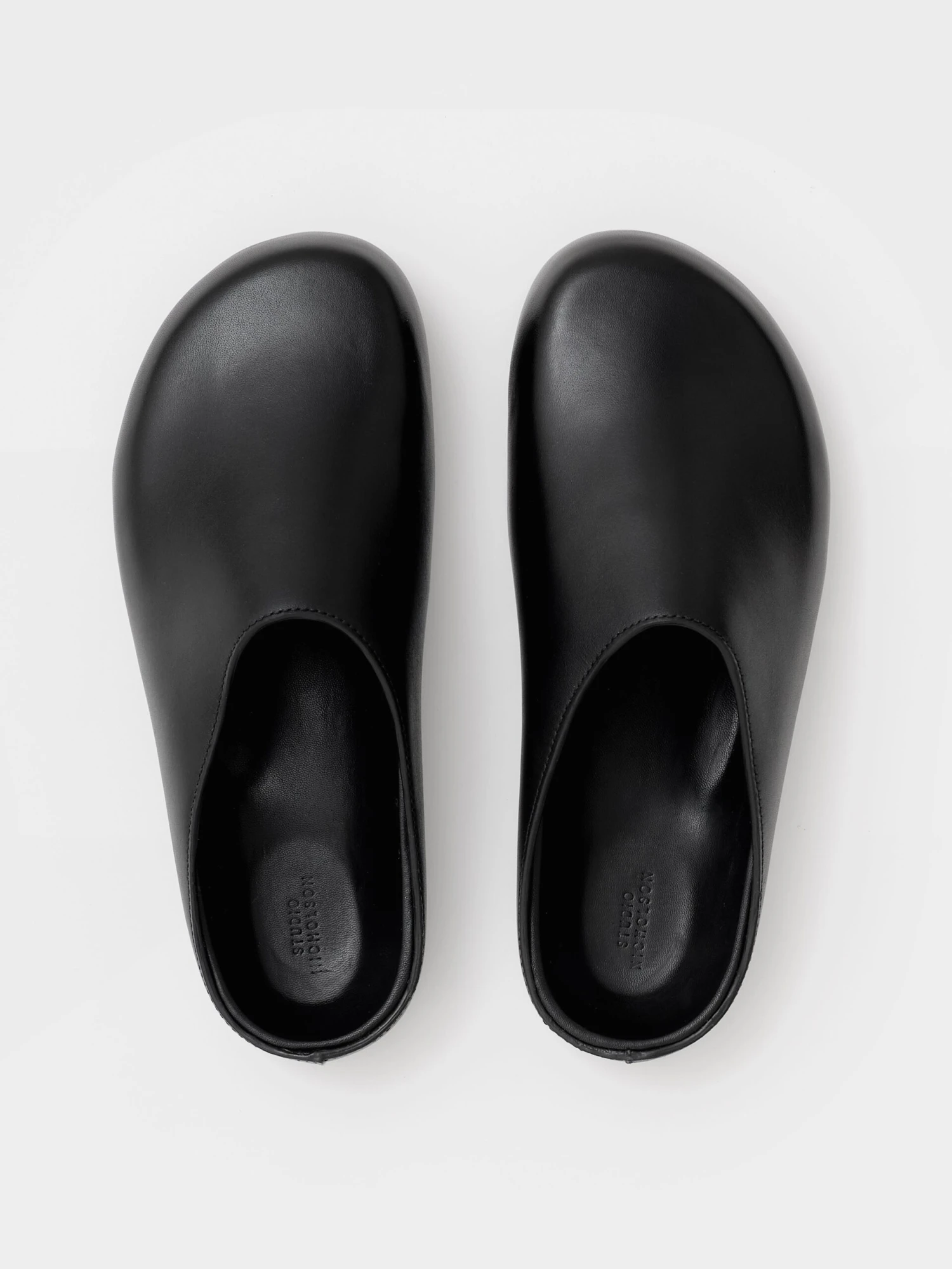 Wearing uses a classic clog last, but with a raised footbed, giving it an exaggerated profile. The upper is made from a single piece of very high quality calf leather, which has been produced in a carbon neutral process.